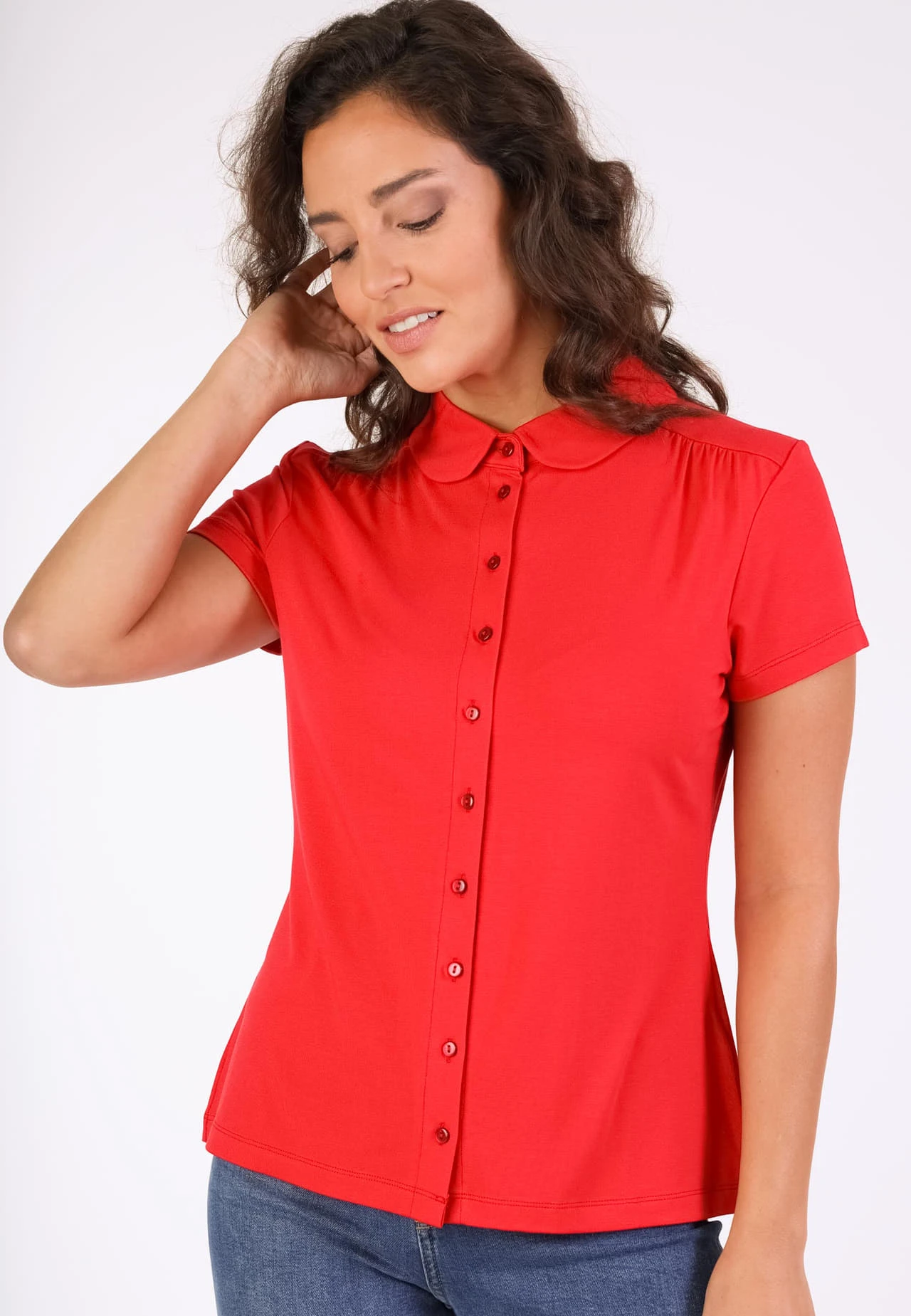 Länge 61cm (M). Vielseitig kombinierbar ist unsere Jerseybluse Andyra mit charmanten Bubikragen und einem Hauch von Retro. Besonderes hübsch ist die Drapierung an den Schulternähten und am Rücken. Aus einer weichen und nachhaltigen Jerseyqualität gefertigt, trägt sich sie sich super bequem.