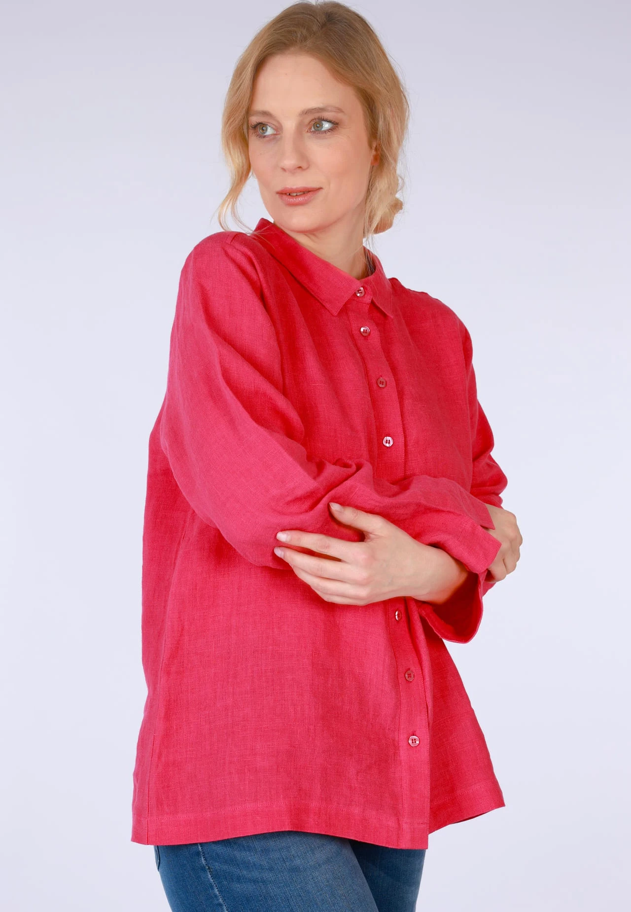 Länge 70cm (M). Komfortabel und edel zugleich ist unser Leinenhemd Felka. Natürlich, kühlend und hautsympathisch, durch die Verwendung qualitativ hoher Flachsfasern, bietet dieser Klassiker einen perfekten Tragekomfort an den heißen Sommertagen. Stilvoll gekleidet und vielseitig kombinierbar darf sie in keinem Kleiderschrank fehlen.