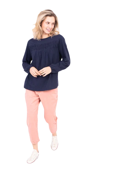 Dieses super bequeme T-Shirt mit langen Arm sieht nicht nur gut aus, der sorgt dafür, dass Sie sich so richtig wohl fühlen können. Trendstark und unkompliziert. Die Raffung an der Brust und die elastischen Bündchen sorgen für einen schmeichelhaften Fall und eine bequeme Passform.
