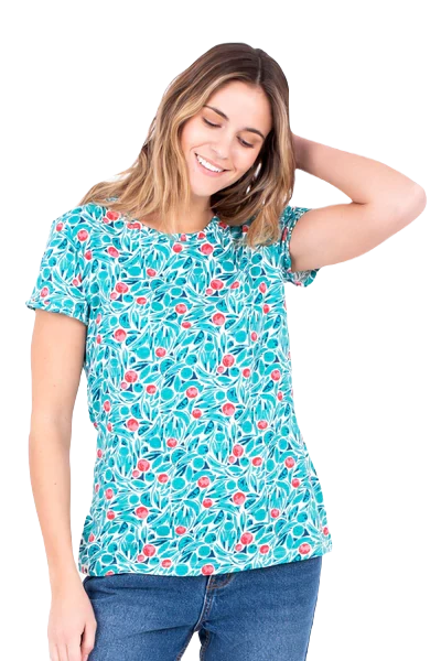 Die eigenen Obstgärten haben die Designer von Brakeburn zu diesem sommerlichen Druck inspiriert. Es besteht vollständig aus Bio-Baumwolle und ist mit kleinen Rüschendetails um einen Rundhalsausschnitt und an den kurzen Ärmelkanten versehen. Ein T-Shirt welches sich nicht nur sehr angenehm trägt, sondern auch leicht zu kombinieren ist.