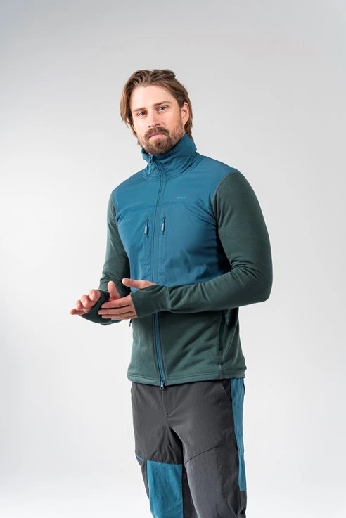 Ganzjährig bei allen Outdooraktivitäten optimalen Komfort genießen. Die neue körperbetonte, leichte, atmungsaktive und windabweisende Midlayer Jacke ist zusätzlich mit einer anliegenden Kapuze ausgestattet, welche bei Nichtgebrauch auch im Kragen verstaut werden kann. Der Außenstoff ist ein gewebtes, windfestet Material, dass Schutz vor Wind und Abrieb bietet. Die weiche Innenseite der Jacke hat herausragende isolierende udn temperaturregulierende Eigenschaften, die auf längeren Wanderungenin den bergen warm und trocken halten. In den zwei Brusttaschen und den zwei Einschubtaschen welche jeweils mittels Reißverschluss zu schließen sind, lassen sich Kleinigkeiten verstauen, die schnell wieder zur Hand sein müssen. Übrigens: in der Nacht auslüften reicht, um die Geruchsentwicklung weiter zu reduzieren, um so die Tragedauer deutlich auszudehnen und schnell ist wieder alles frisch udn einsatzbereit