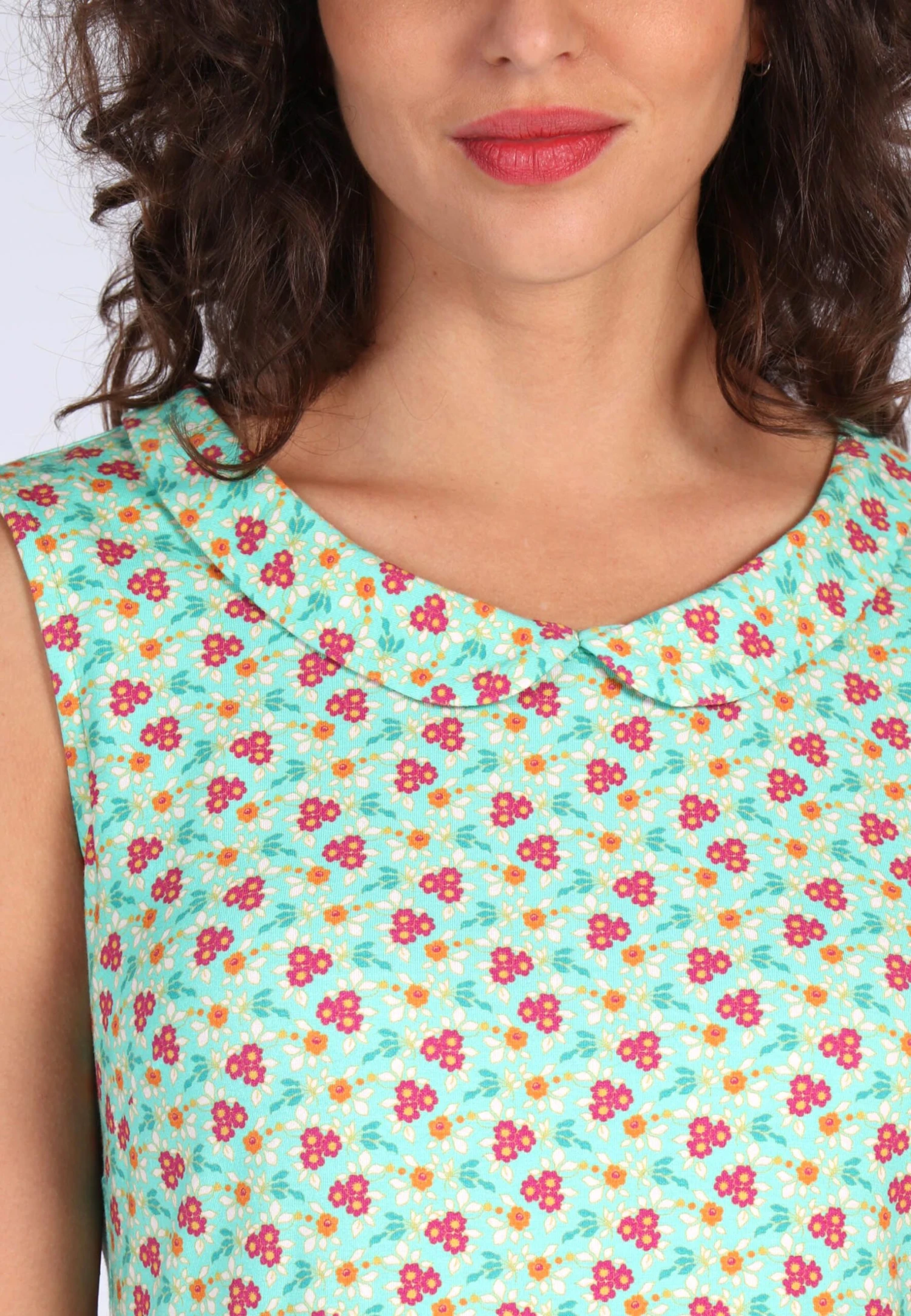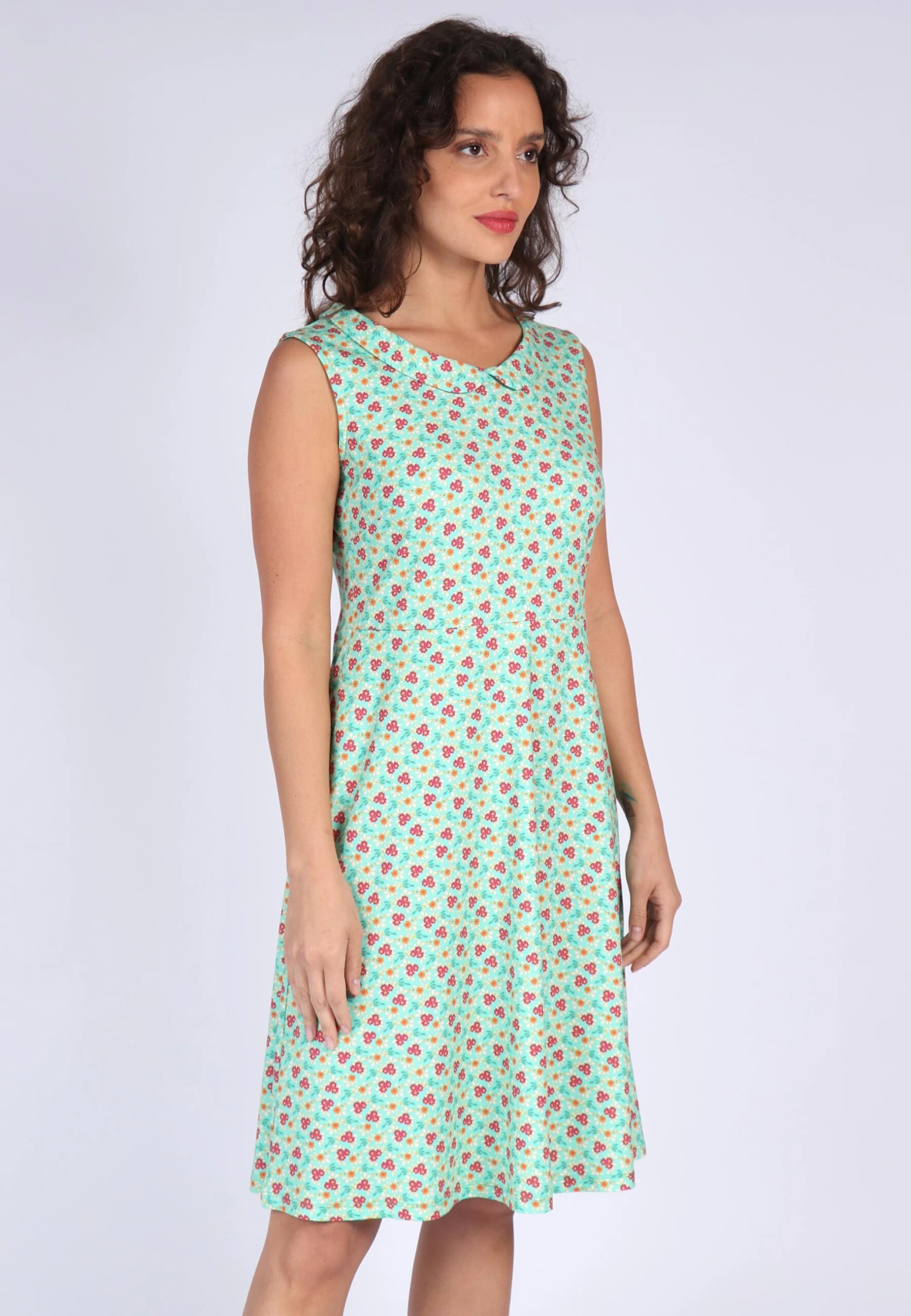 Gesamtlänge bei Größe M 97cm. Unser Vintage inspiriertes, ärmellöses Kleid Charly aus einer weichen und nachhaltigen Jerseyqualität hat einen zauberhaften Bubikragen. Der knielange schwingende Rock bietet komfortable Bewegungsfreiheit. Wir lieben die besonderen Lykka Du Nord Drucke in ausdrucksstarken Farben.