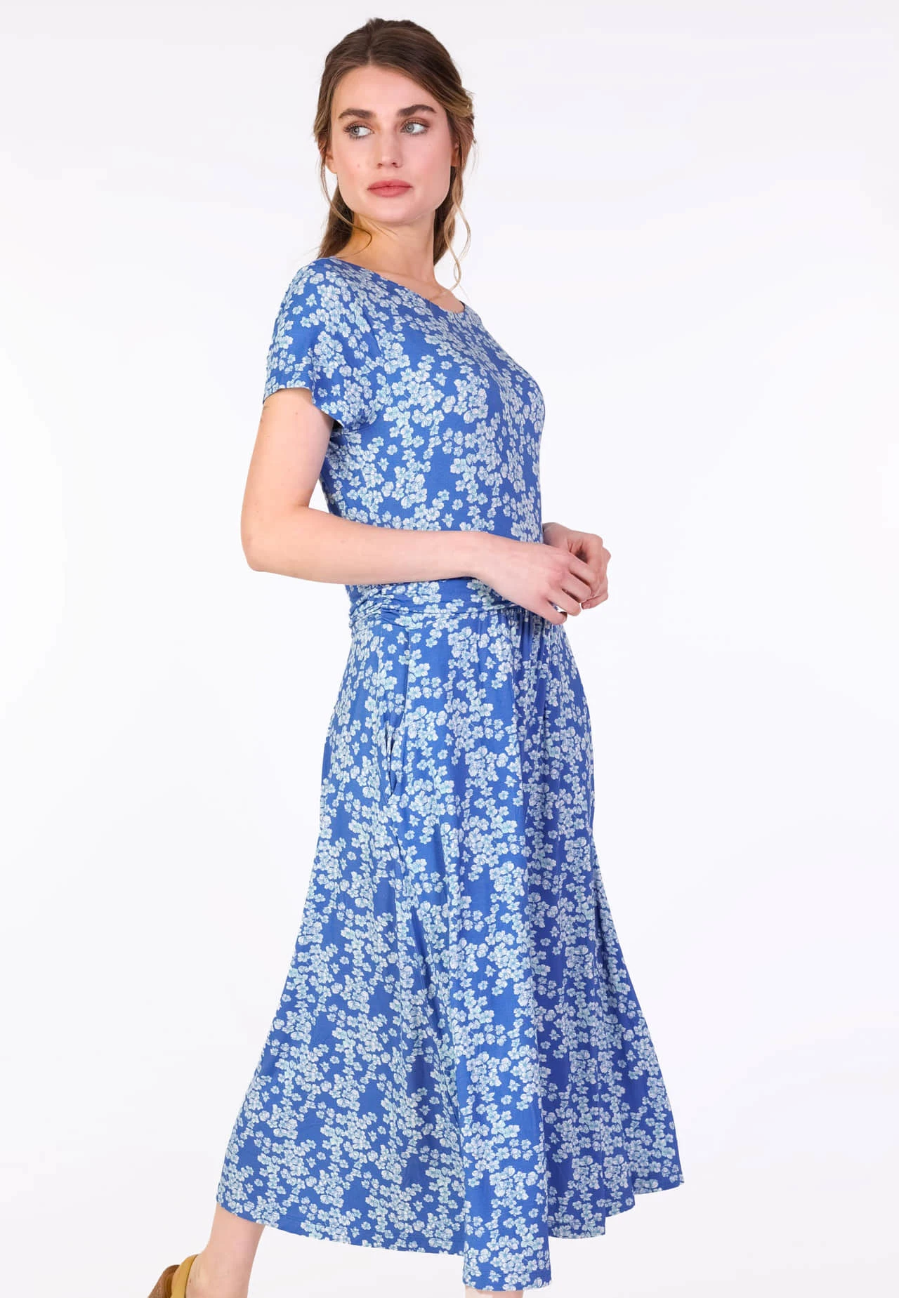 Länge 118cm (M). Unser elegantes Kleid Malind aus nachhaltiger Viskose in einer modernen Midilänge ist ein traumhafter Blickfang! Der leichte U-Boot Ausschnitt und die lässigen Eingrifftaschen in den Seiten setzen lässige Akzente. Der schwingende Rock mit der charmanten Raffung in der Mitte unterstreicht den femininen Charakter.