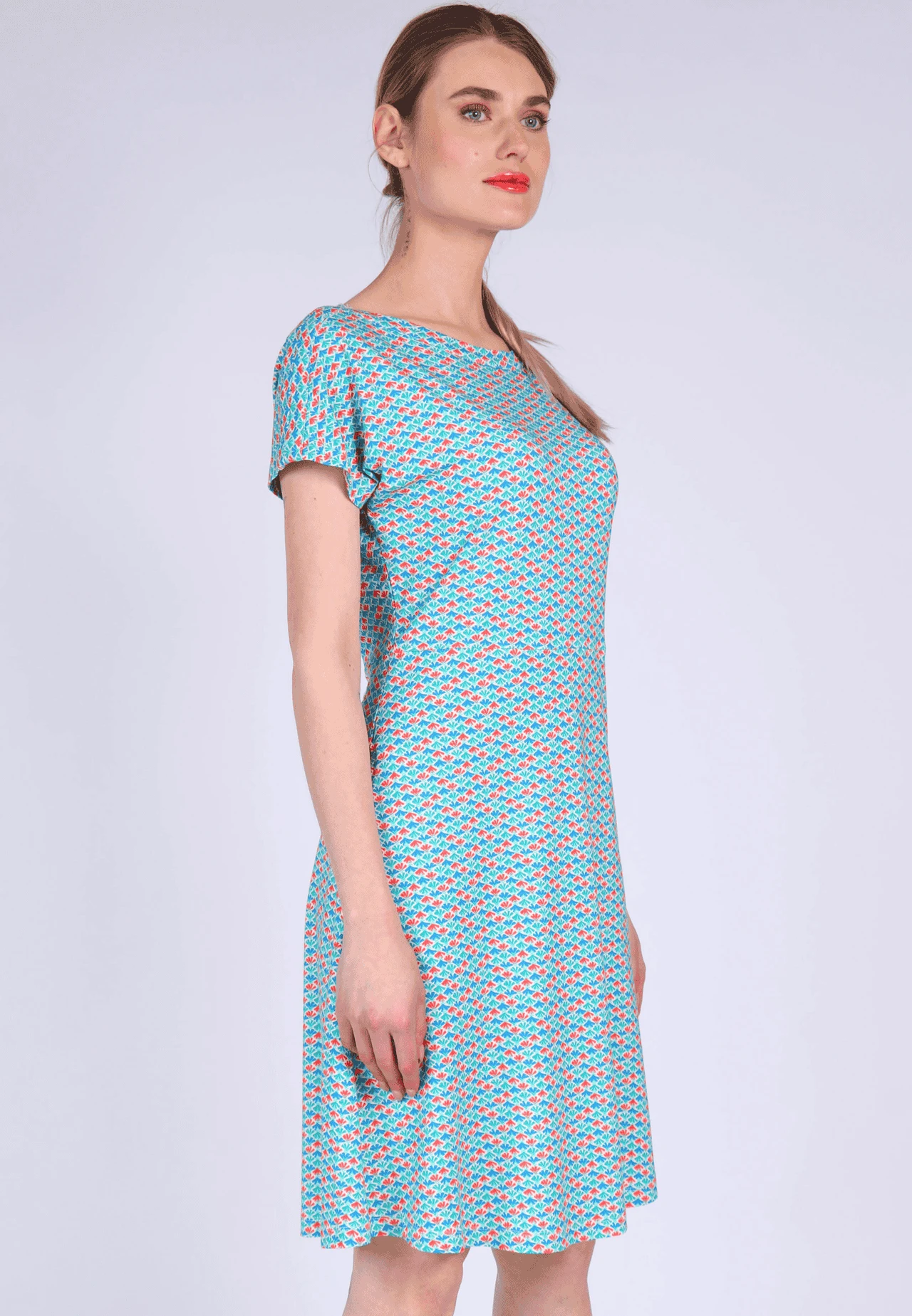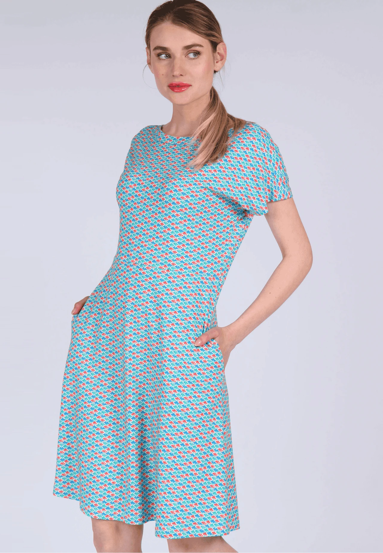 Gesamtlänge bei Größe M 97cm. Unser hübsches Kleid Meghan hat einen überschnittenen, sommerlichen Ärmel und einen leichten U-Boot Ausschnitt der feminine Akzente setzt. Die lässigen Eingrifftaschen in den Seiten runden das Design ab. Aus weicher, nachhaltiger Jerseyqualität gefertigt, liegt es super angenehm auf der Haut und kommt im tollen, exklusiven Lykka du Nord Druck daher.