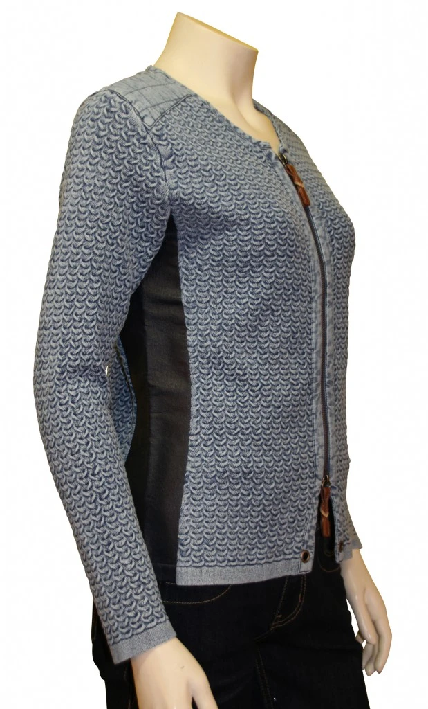 Eine Jacke, die Ihresgleichen sucht! Glänzen Sie doch einmal auf eine ganz andere Art und Weise, denn diese Jacke ist mit Sicherheit keine klassische Strickjacke im herkömmlichen Sinne. Hochwertiger Baumwollstrick wurde hier kombiniert mit waschechtem Leder, die Reißverschlüsse sorgen für einen lockeren Sitz und machen neben dem seitlichen, mit Leder beschichtetem Strick den Style dieser Jacke aus.