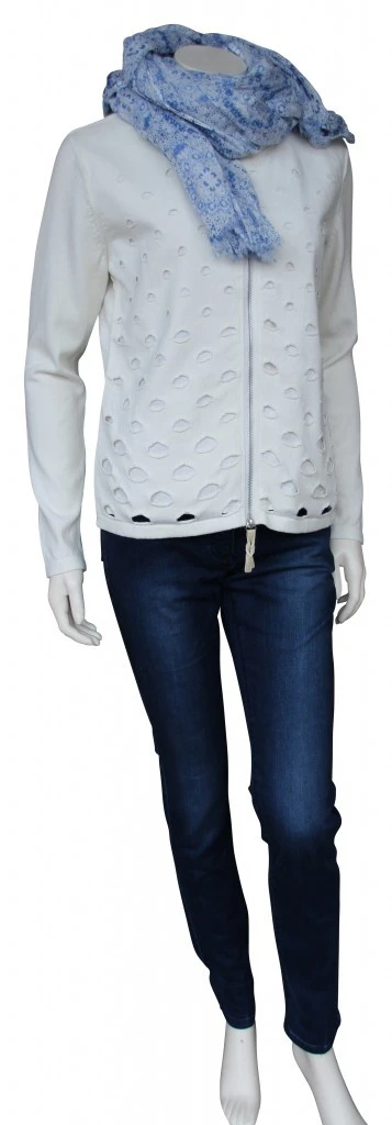 Eine der schönsten Jacken der Saison. Das neue innovative Strickmuster mit eingearbeiteten Löchern ist mit einem leichten Baumwollstoff hinterlegt, der eine Farbnuance dunkler ist als der Strick und dadurch an Tiefe gewinnt. Der 2 Wege Reißverschluss sorgt für optimalen Tragekomfort und Bewegungsfreiheit.