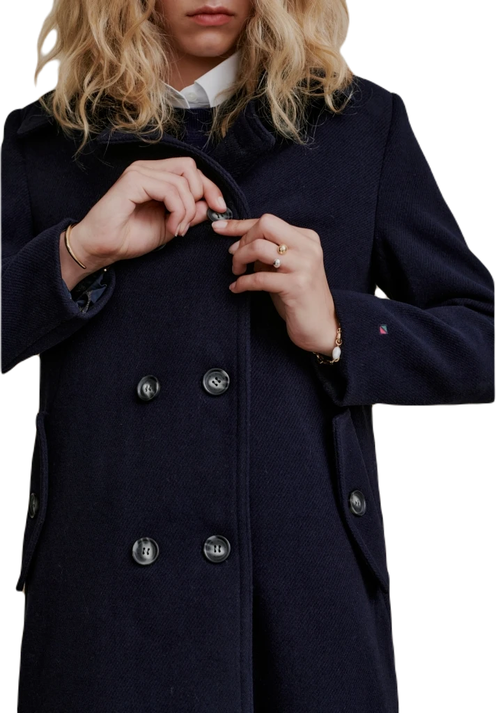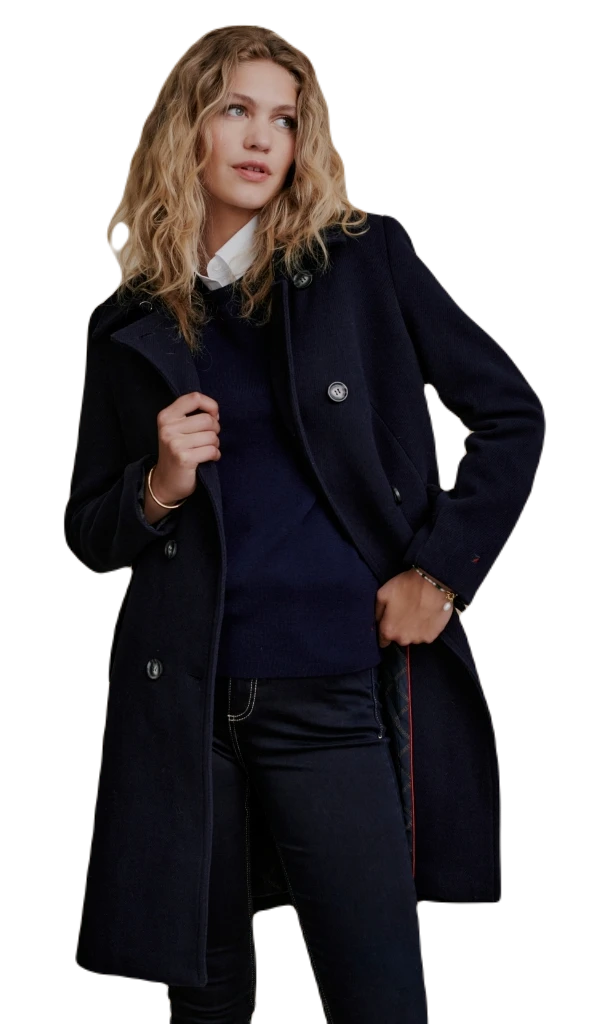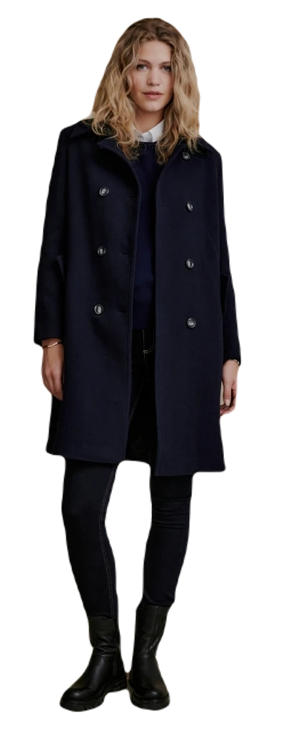 Weitere Größen bestellen wir gerne auf Anfrage Zeitlos eleganter Damen Caban Mantel in eleganter schwarzer Farbe, welcher Stil und Funktionalität vereint. Dieser Zweireiher-Mantel wurde sorgfältig entworfen, um Sie warm zu halten und gleichzeitig Ihrem Outfit einen Hauch von Eleganz zu verleihen. Eigenschaften: Farbe und Design: Der Mantel ist in klassischem Schwarz gehalten, was ihn vielseitig und leicht kombinierbar macht. Das Zweireiher-Design verleiht dem Mantel eine zeitlose Eleganz und verleiht Ihrem Look eine gewisse Raffinesse. Material: Hergestellt aus hochwertigem Material, bietet dieser Caban Mantel Wärme und Komfort. 70% Polyester, 30% Wolle Schnitt und Passform: Der Mantel ist so geschnitten, dass er eine schmeichelhafte Silhouette erzeugt, ohne dabei die Bewegungsfreiheit einzuschränken. Er betont Ihre Figur auf elegante Weise und bietet gleichzeitig ausreichend Platz, um darunter noch leichte Pullover oder Schals zu tragen. Verschluss: Der Mantel verfügt über einen Doppelreiher-Verschluss, der sowohl funktional als auch modisch ist. Dieser Verschluss hält die Kälte draußen und fügt dem Mantel einen Hauch von Raffinesse hinzu. Vielseitigkeit: Dieser Caban Mantel ist perfekt für verschiedene Anlässe, von formellen Veranstaltungen bis hin zu Alltagsoutfits. Sie können ihn über Kleider, Anzüge oder Jeans tragen, um Ihrem Look eine stilvolle Note zu verleihen. Pflegehinweise: Wir empfehlen in der Regel eine professionelle Reinigung für Ihren Mantel, um die Qualität und Langlebigkeit zu gewährleisten. Beachten Sie jedoch immer die Pflegeetiketten des Produkts. Ihr neuer Caban Mantel wird die perfekte Ergänzung für Ihre Garderobe und hat gute Chancen eines ihrer zeitlosen Lieblingsstücke zu werden.