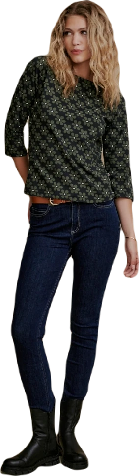 Tauchen Sie ein in den Charme der Natur ein mit ihrem neuen exquisiten Damen-Shirt aus hochwertiger Baumwolle und Blumen Allover Druck. Dieses wunderschöne Kleidungsstück vereint Komfort, Stil und einen Hauch von blumiger Eleganz. Eigenschaften: Material: Unser Shirt besteht aus feinster Baumwolle, die sich sanft auf der Haut anfühlt und ein angenehmes Tragegefühl bietet. Die atmungsaktive Baumwolle sorgt dafür, dass Sie sich den ganzen Tag über frisch und wohl fühlen und der geringe Anteil Elasthan sorgt für bequemen Sitz. Design: Das Shirt ist mit einem bezaubernden Blumenmuster verziert, das den femininen Charme unterstreicht. Die Blumen verleihen dem Shirt einen natürlichen und lebendigen Look. Ärmel: Die 3/4-Ärmel geben dem Shirt eine schicke Note und machen es zu einer vielseitigen Wahl für unterschiedliche Anlässe. Egal, ob Sie es im Büro, bei einem Treffen mit Freunden oder in der Freizeit tragen, dieses Shirt ist stets eine stilvolle Wahl. Passform: Das Shirt bietet eine bequeme Passform, die gleichzeitig schmeichelhaft ist. Es schmiegt sich sanft an die weibliche Silhouette an, ohne dabei einzuengen. Pflegeleicht: Durch die hochwertige Verarbeitung und die sorgfältig ausgewählten Materialien ist das Shirt pflegeleicht und behält auch nach mehreren Waschgängen seine Form und Farbintensität. Kombinationsmöglichkeiten: Tragen Sie dieses Shirt zu Jeans für einen legeren Look oder kombinieren Sie es mit einer schicken Hose für einen eleganteren Auftritt. Es ist die ideale Ergänzung für Ihren Kleiderschrank, um jedem Outfit eine frische und feminine Note zu verleihen. Entdecken Sie die Schönheit der Natur mit unserem Damen-Shirt aus Baumwolle. Bestellen Sie noch heute und bringen Sie Blütenzauber in Ihre Garderobe!