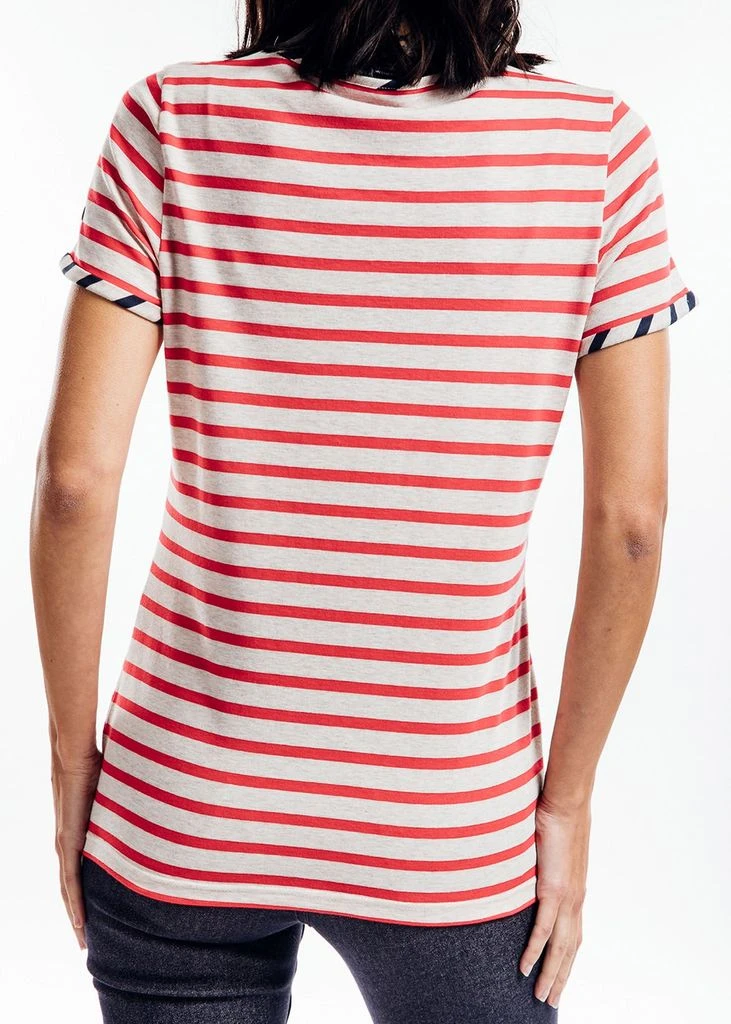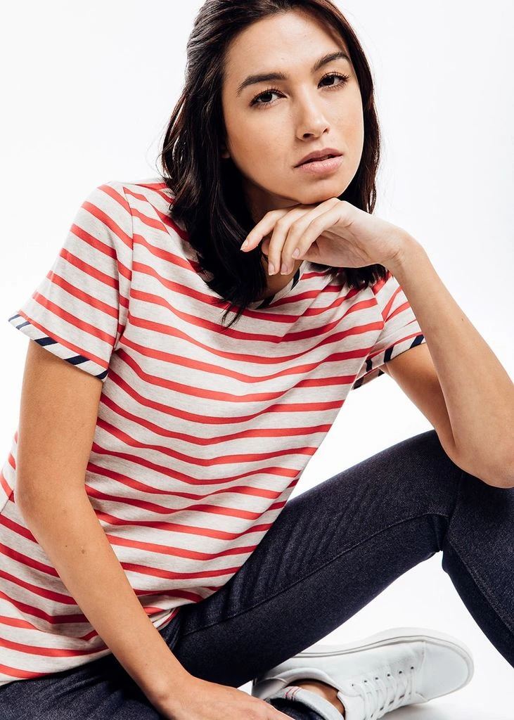 Geringelte Shirt’s haben immer das gewisse „sportive Etwas“. Diese neue Version wurde aus Bio-Baumwolle in den Werkstätten von Saint James in Frankreich hergestellt und zeichnet sich durch die gedrehten kontrastierenden Streifen am Ausschnitt und an den Armbündchen aus. Es ist ein super bequemes Shirt in normaler Passform aus feinster gekämmter Baumwolle, welches nicht nur gut aussieht sondern auch für absoluten Wohlfühlkomfort sorgt. Es ist absolut pflegeleicht und passt zu jeder Jeans. Die hochwertige Baumwolle und die excellente Verarbeitung sorgen für pflegeleichte Eigenschaften und absolute Langlebigkeit. Die Größen, welche zur Auswahl stehen, sind Ihrem Land angepasst (Shop Sprache: Deutsch = deutsche Größen/ Shop Sprache französisch = französische Größen) Fotos: S.A.S. Tricots Saint-James France gezeigte Accessoires (Hose) sind nicht Bestandteil des Angebotes