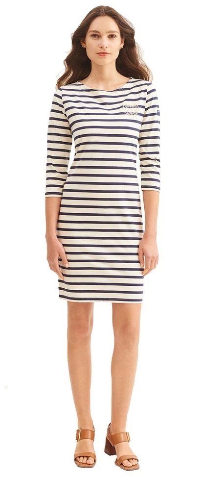 Für gute Laune sorgt dieses sportlich maritime Kleid aus 100% Bio Baumwolle. Es trägt sich angenehm auf der Haut und macht zu vielen Gelegenheiten eine gute Figur. Größenangabe je nach eingestellter Ländersprache eingestellte Sprache Deutsch > werden auch deutsche Größen angezeigt Fotos: S.A.S. Tricots Saint-James France/ gezeigte Accessoires (Hose) sind nicht Bestandteil des Angebotes
