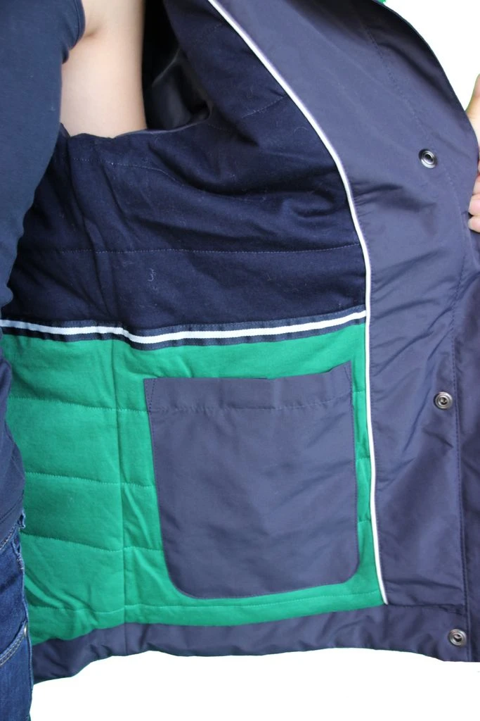 Mit dieser Übergangsjacke werden Sie sich auf jeden Regen freuen, denn: wenn sie nass wird, wird ein Ankermotiv sichtbar. Damit sie diese besondere Jacke mit ihrem raffinierten Stoff auch lange genießen können, ist sie wind- und wasserdicht Dank der verschweißten Nähte. Geschlossen wird die Jacke durch einen Reißverschluss und zusätzlicher Knopfreihe, die Einschubtaschen können mit einem Reißverschluss geschlossen und die Kapuze abgenommen werden. Die Größen, welche zur Auswahl stehen, sind Ihrem Land angepasst (Shop Sprache: Deutsch = deutsche Größen/ Shop Sprache französisch = französische Größen) gezeigte Accessoires (Hose, Pullover) sind nicht Bestandteil des Angebotes