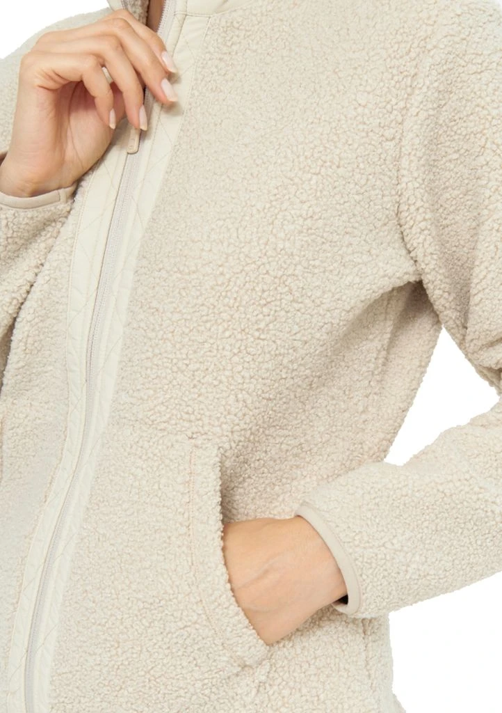 Draußen ist es ungemütlich windig und kalt? Dann stecken Sie in dieser trendigen Jacke aus weichem Teddyfleece wunderbar warm. Dank des Stehkragens wird auch der Halsbereich schön warm gehalten. Der Reißverschluss wurde extra eingefasst und abgesteppt, die Kängurutaschen lockern die Optik auf und es lassen sich so manche Kleinigkeiten verstauen. Diese Jacke ist absolut trendy und gemütlich.
