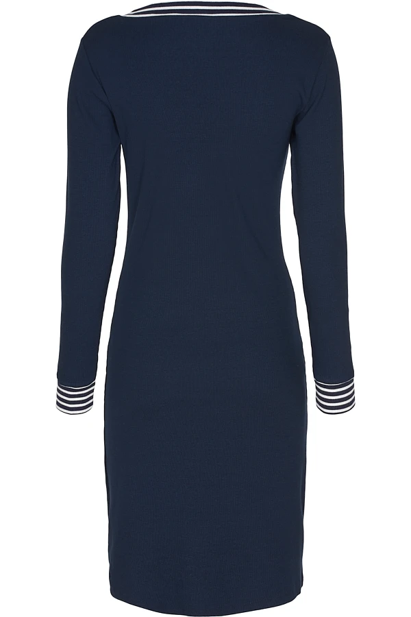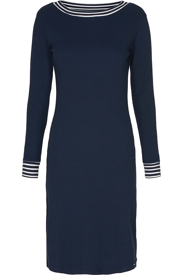 Dieses super bequeme Kleid sieht nicht nur gut aus, es sorgt dafür, dass Sie sich so richtig wohl fühlen können. Das Streifendesign am Kragen und an den Bündchen lässt Urlaubsfeeling aufkommen. Die Materialmischung sorgt für angenehmen Tragekomfort und ist zudem noch absolut pflegeleicht.