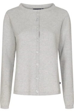 Leichte kombinationsfreudige Strickjacke aus dem Hause Sea Ranch. Das kleine Strickmuster wirkt fein und feminin, die Jacke hat eine normale Passform und lässt sich super mit jeglicher Art Shirts und Blusen kombinieren. Die seitlichen Schlitze sorgen für einen lockeren Sitz und etwas mehr Bewegungsfreiheit.