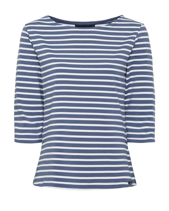 Sommerhitze am Strand oder auf der Arbeit dieses T-Shirt begleitet Sie zu vielen Gelegenheiten. Die hochwertige Kunstfaser Polyamid bietet einen mittleren Schutz vor schädlicher UV Strahlung. Das TShirt begeistert mit seinem sportiven Streifendesign und dem U-Boot-Ausschnitt welcher ihr Dekoltee richtig zur Geltung bringt. Einfach rein schlüpfen und das wunderbar glatte Material mit Stretchanteil auf der Haut spüren.