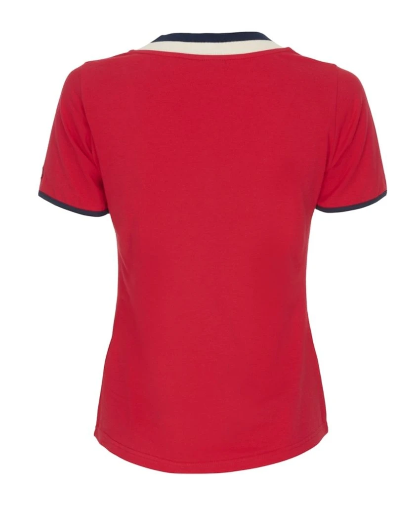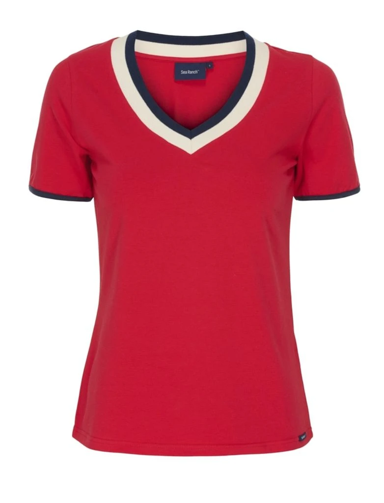 Der V-Hals Ausschnitt und die maritimen Kontrastfarben in Navy und Ecru geben diesem Shirt seinen sportlich maritimen Touch. Das dünne Jersey aus 95% Baumwolle sorgt für besten Tragekomfort und pflegeleichte Eigenschaften. Ein Basic-Muss für Ihren Kleiderschrank.