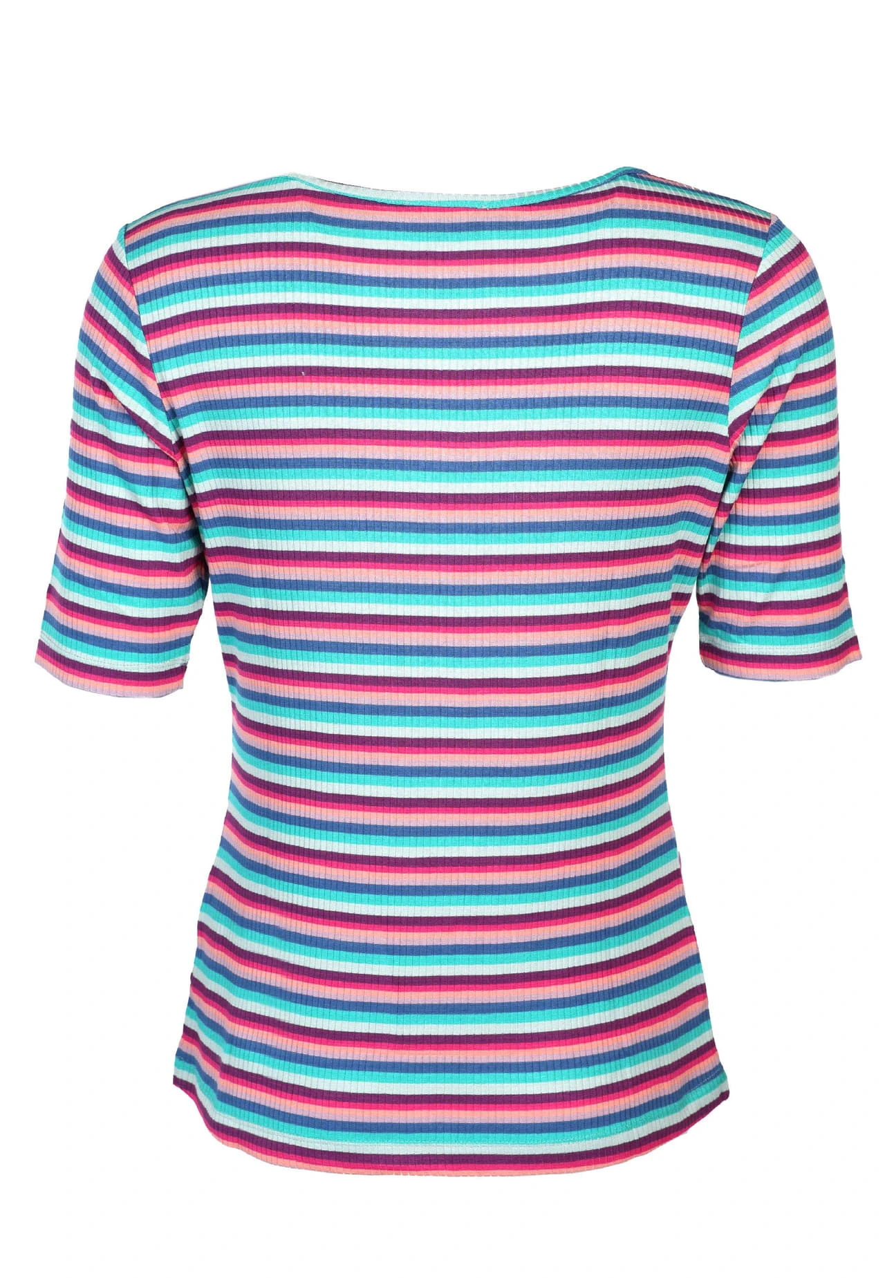 Länge 65cm (M). Easy to wear und dabei super bequem ist das Shirt Fia mit einem multicolor Streifen-Muster. Die hochwertige und nachhaltige Visose-Qualiät liegt weich auf der Haut. Der ideale Begleiter für jeden Tag.