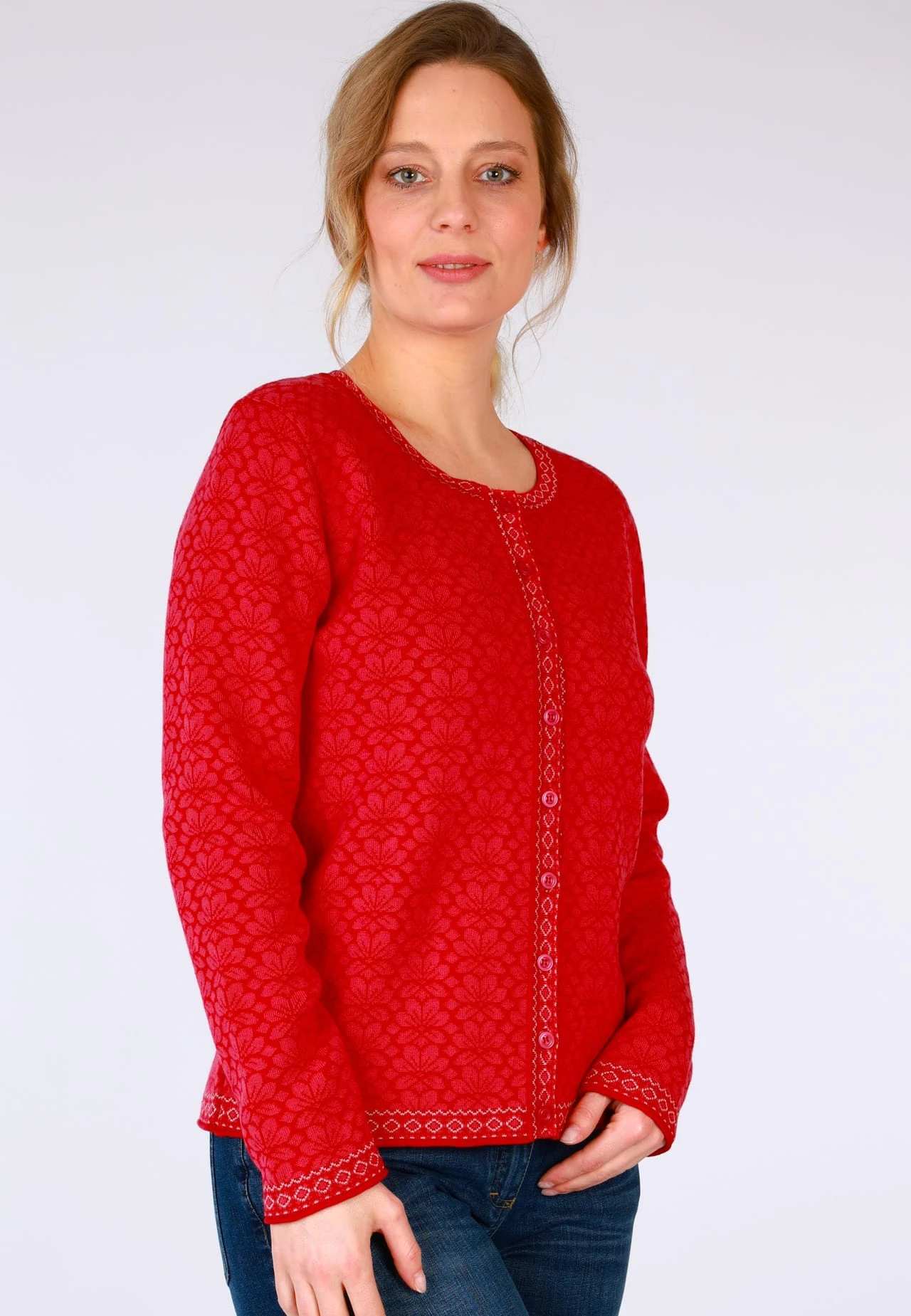 Länge 59 cm (M). Unsere Rundhals-Strickjacke HEDIE kommt mit ornamentalem Mustermix und einem femininen Schnitt. Ein zusätzlicher Blickfang sind die farblich abgesetzten Kanten. Sie ist ein toller Begleiter für jeden Tag. Aus 100% Bio-Baumwolle gefertigt sorgt sie zusätzlich für einen angenehmen Tragekpmfort.