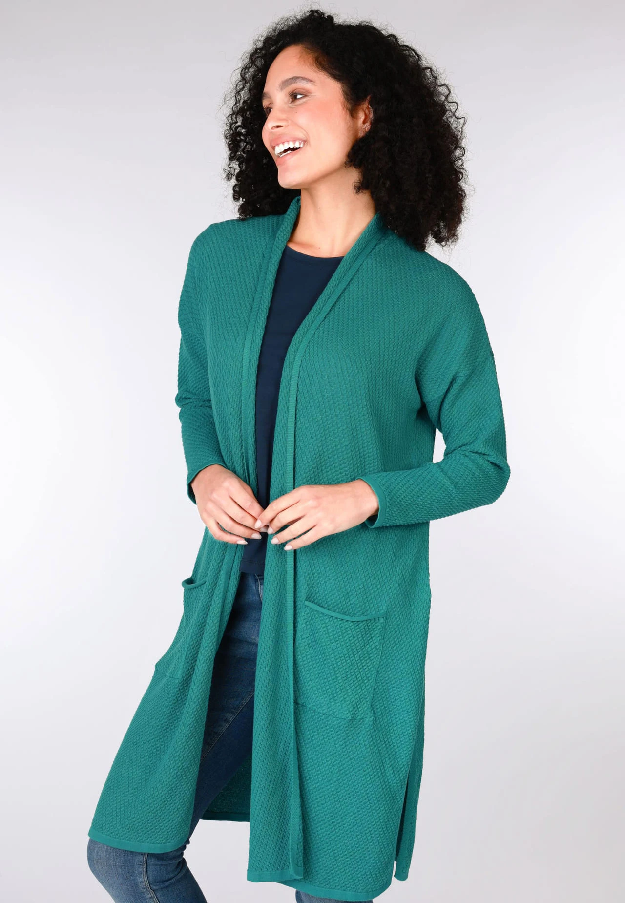 Länge 97 cm (M). Unser einfarbiger Strickmantel ILKA kommt mit einem schönen Strukturmuster und lässigem Schnitt. Er ist ein toller Begleiter für jeden Tag. Aus 100% Bio-Baumwolle gefertigt sorgt er zusätzlich für einen angenehmen Tragekomfort.