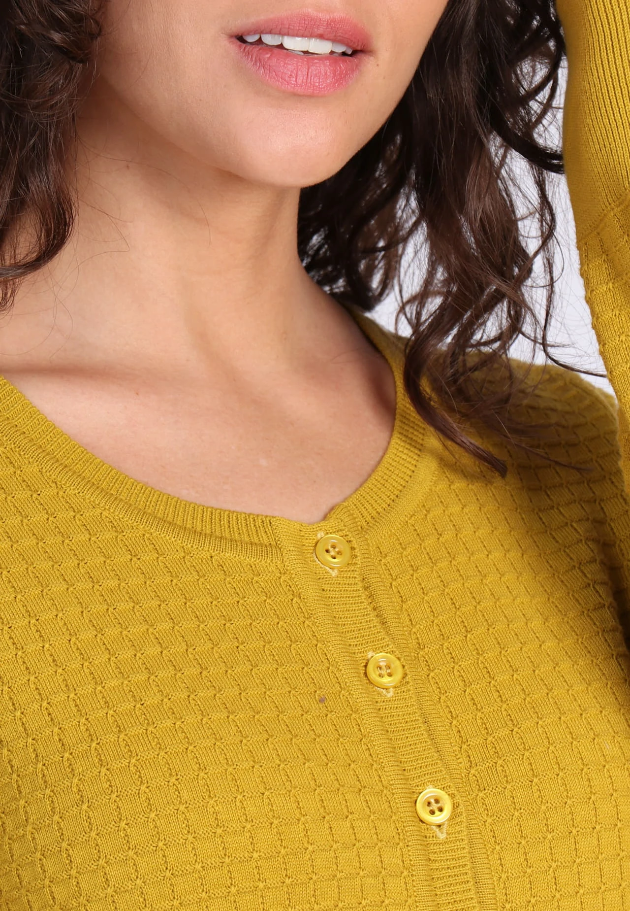Gesamtlänge 56 cm bei Größe M. Klassisch und feminin kommt unsere Rundhals-Strickjacke Manon. Besonderheit ist das delikate Strickmuster im Retro-Stil und die breiten Bündchen. Die Bio-Baumwolle bietet zusätzlich einen hohen Tragekomfort und macht sie zu einem tollen Alltagsbegleiter.