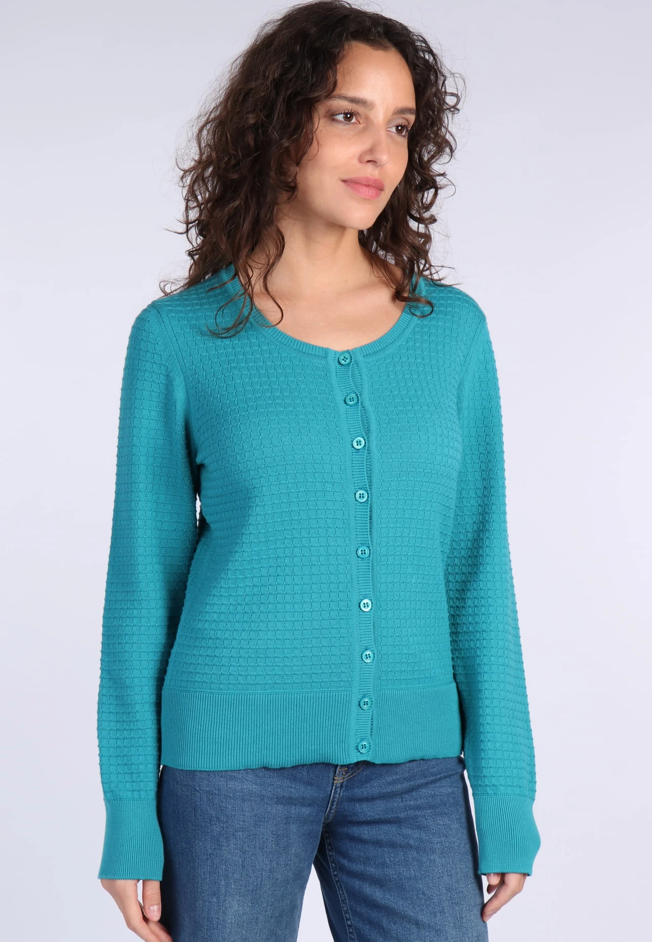 Gesamtlänge 56 cm bei Größe M. Klassisch und feminin kommt unsere Rundhals-Strickjacke Manon. Besonderheit ist das delikate Strickmuster im Retro-Stil und die breiten Bündchen. Die Bio-Baumwolle bietet zusätzlich einen hohen Tragekomfort und macht sie zu einem tollen Alltagsbegleiter.