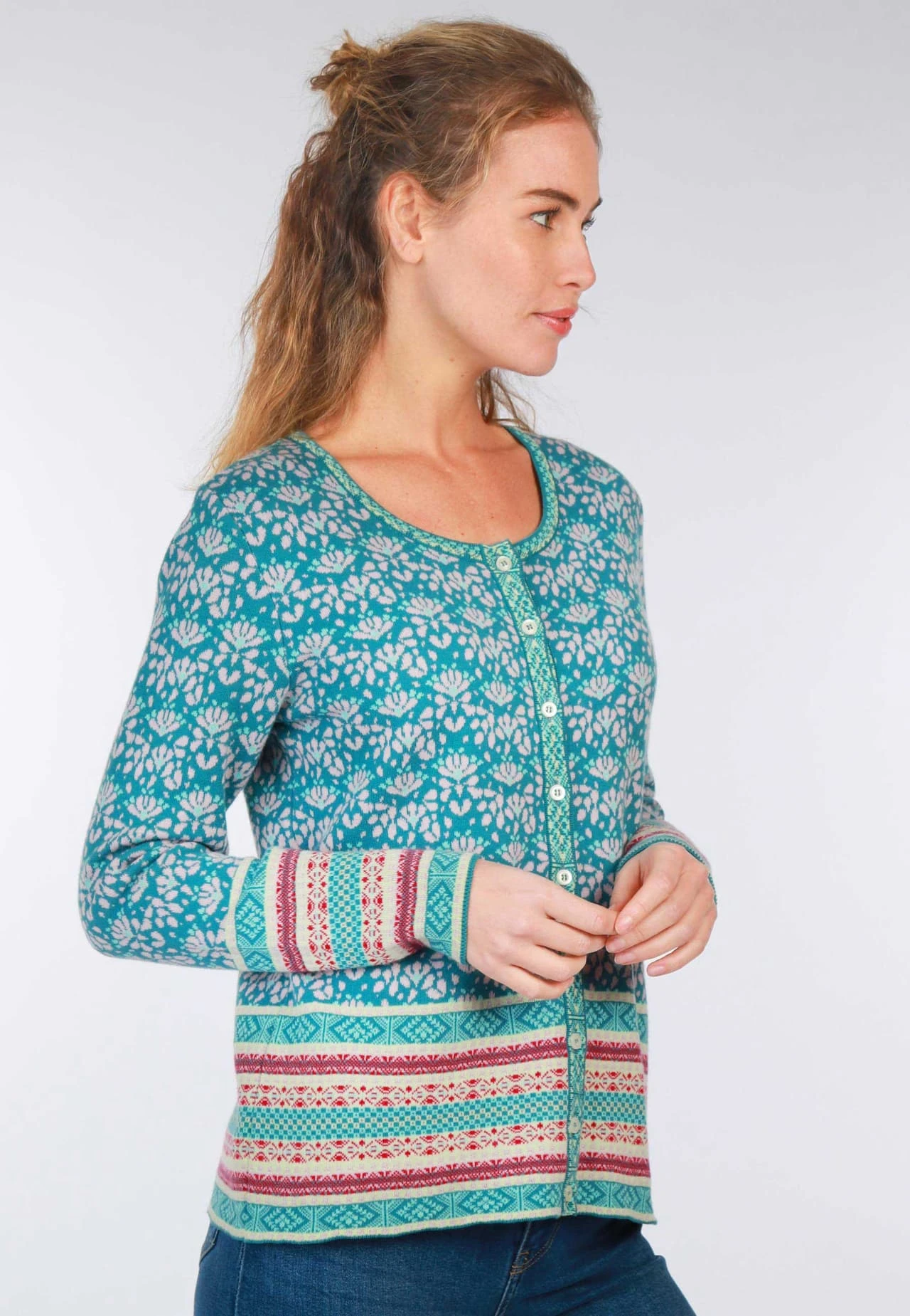 Länge 62cm (M). Möchten Sie Ihren Kleiderschrank um eine stilvolle und umweltbewusste Strickjacke erweitern? Dann haben wir genau das Richtige für Sie! Unsere Rundhals-Strickjacke RENEÉ GARLAND mit aufwändigem Strickmuster besteht aus 100% Organic Cotton. Das einzigartige Jaquardmuster gibt der Jacke einen modernen Look und lässt Sie in jeder Situation gut aussehen. Durch die hochwertige Verarbeitung und die natürliche Robustheit des Materials haben Sie zudem eine Jacke, die Sie bequem und langfristig tragen können. Ob zu Jeans und Sneakern oder zu einer Hose für einen coolen Office-Look – diese Strickjacke ist ein echter Hingucker. Und das Beste daran ist, dass Sie mit dem Kauf auch noch etwas Gutes für die Umwelt tun. Eine tolle Kombination aus Stil und Nachhaltigkeit.