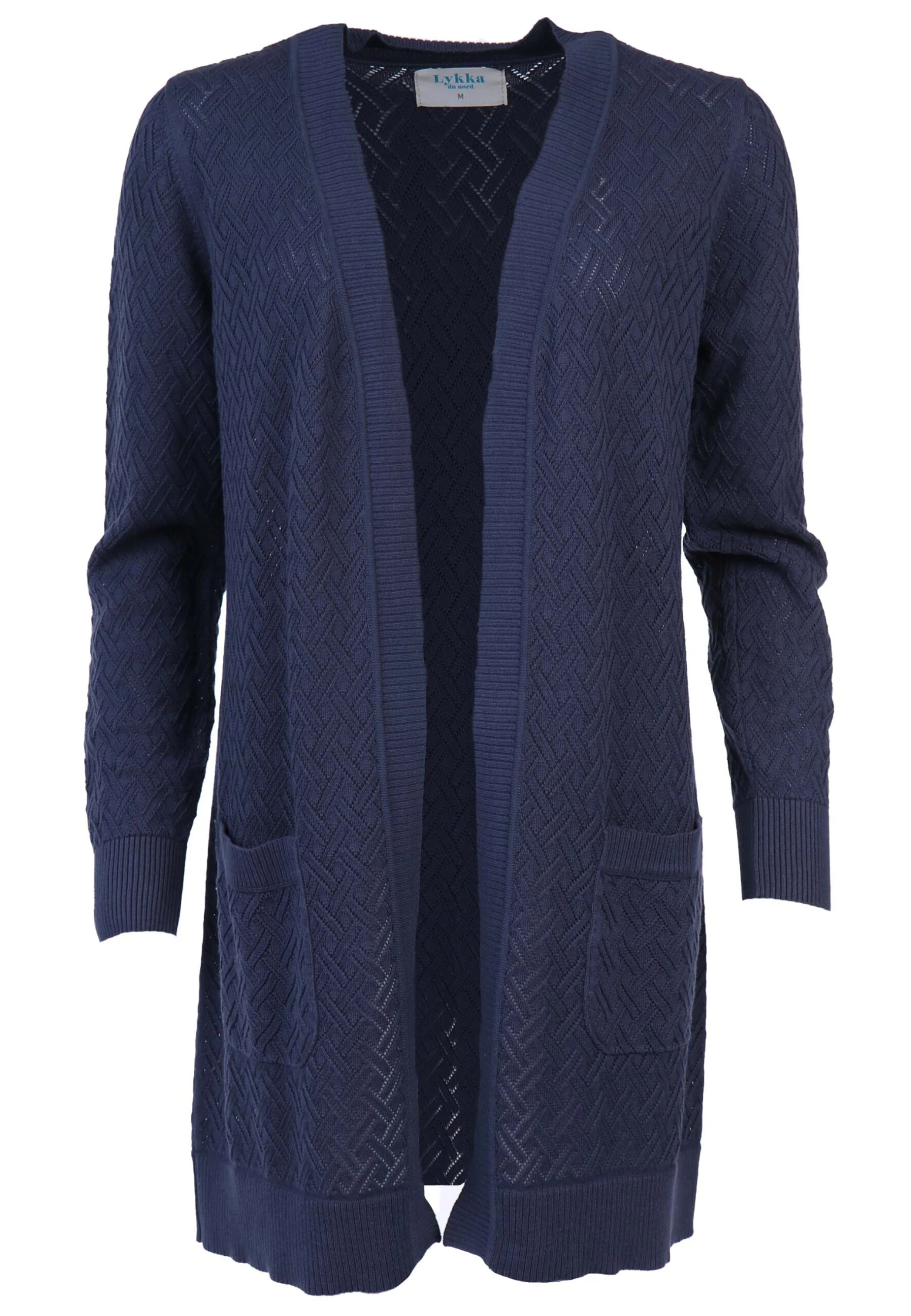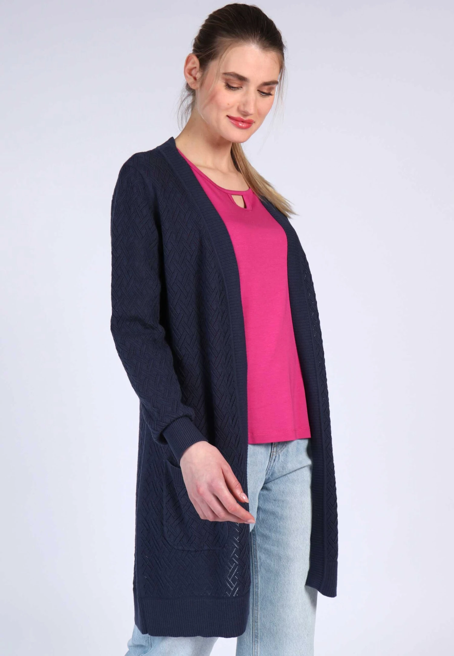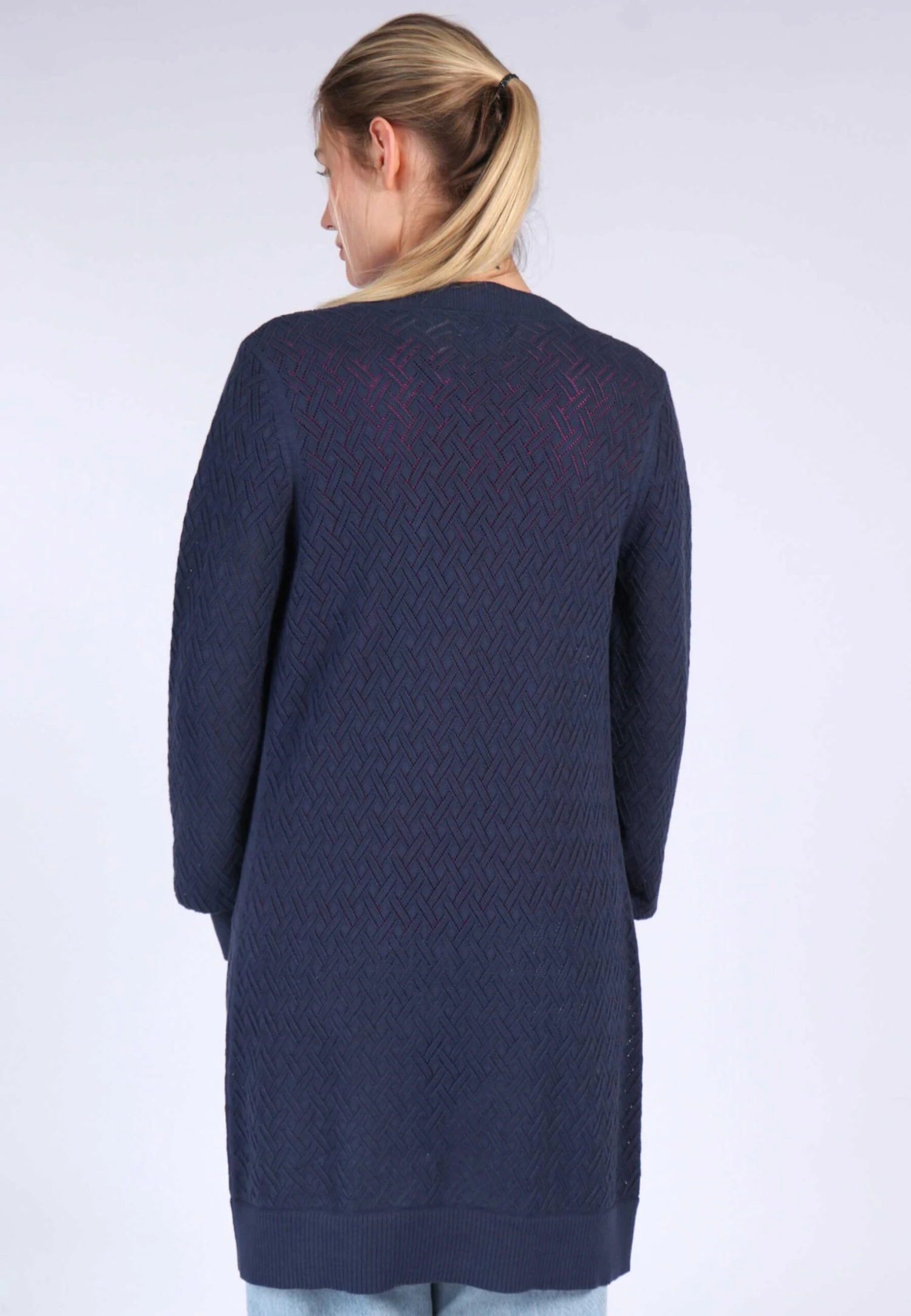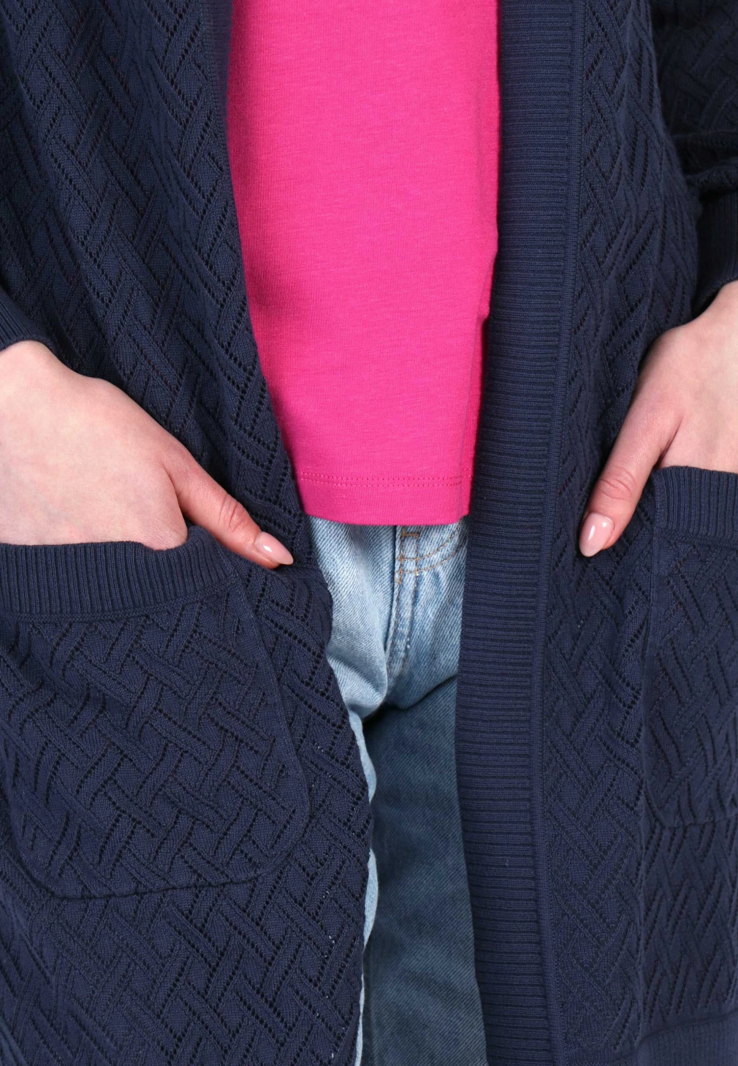 Gesamtlänge 84 cm bei Größe M. Dieser Strickmantel mit Retro-Muster ist eine gemütliche aber stylische Hülle. Die breiten Rippen-Bündchen sowie die aufgesetzten Taschen sind weitere praktische Details. Der Style Viola ist die perfekte Ergänzung zu Jeans, Kleidern und Röcken. Er ist ein echter Blickfang und untersteicht den lässig-femininen Look. Durch die verwendete Bio-Baumwolle ist dieser Strickmantel sehr angenehm zu tragen.