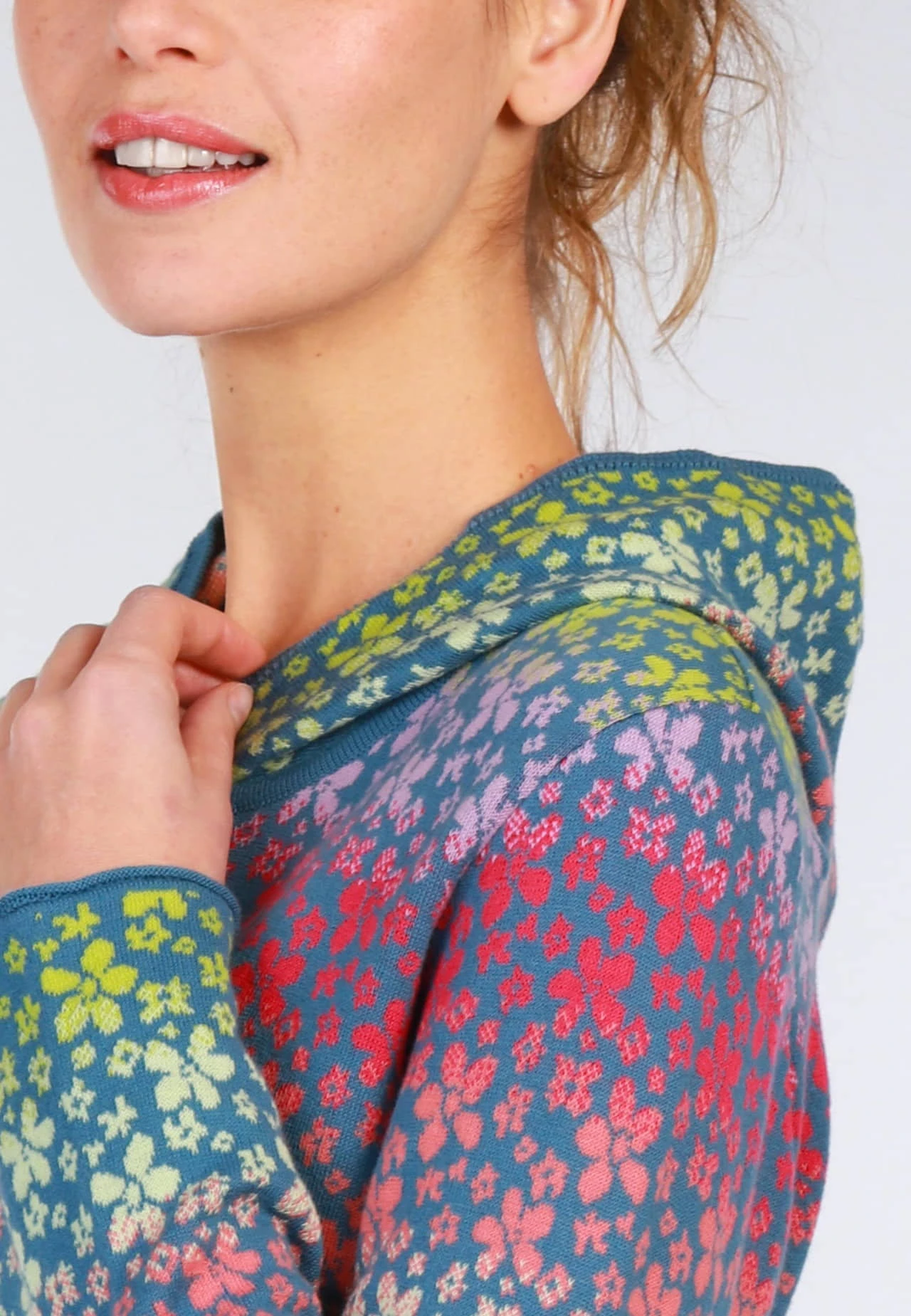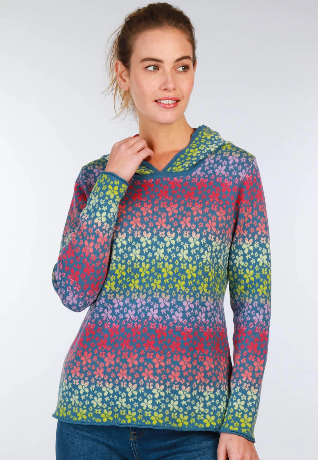 Länge 64cm (M). Unser legerer Kapuzenpullover bietet nicht nur einen unglaublichen Tragekomfort, sondern ist darüber hinaus mit einem atemberaubenden Regenbogenverlauf gestaltet. Dieser einzigartige Farbverlauf mit floralem Design gibt unserem Pullover MINNI FLOWER SHADES eine leichte Note von Fröhlichkeit und ist das perfekte Kleidungsstück für alle modebewussten Frauen. Dieser Hoodie wird Ihnen dank seines unglaublich weichen Organic-Cotton-Materials den ganzen Tag über ein angenhmes Tragegefühl bieten.
