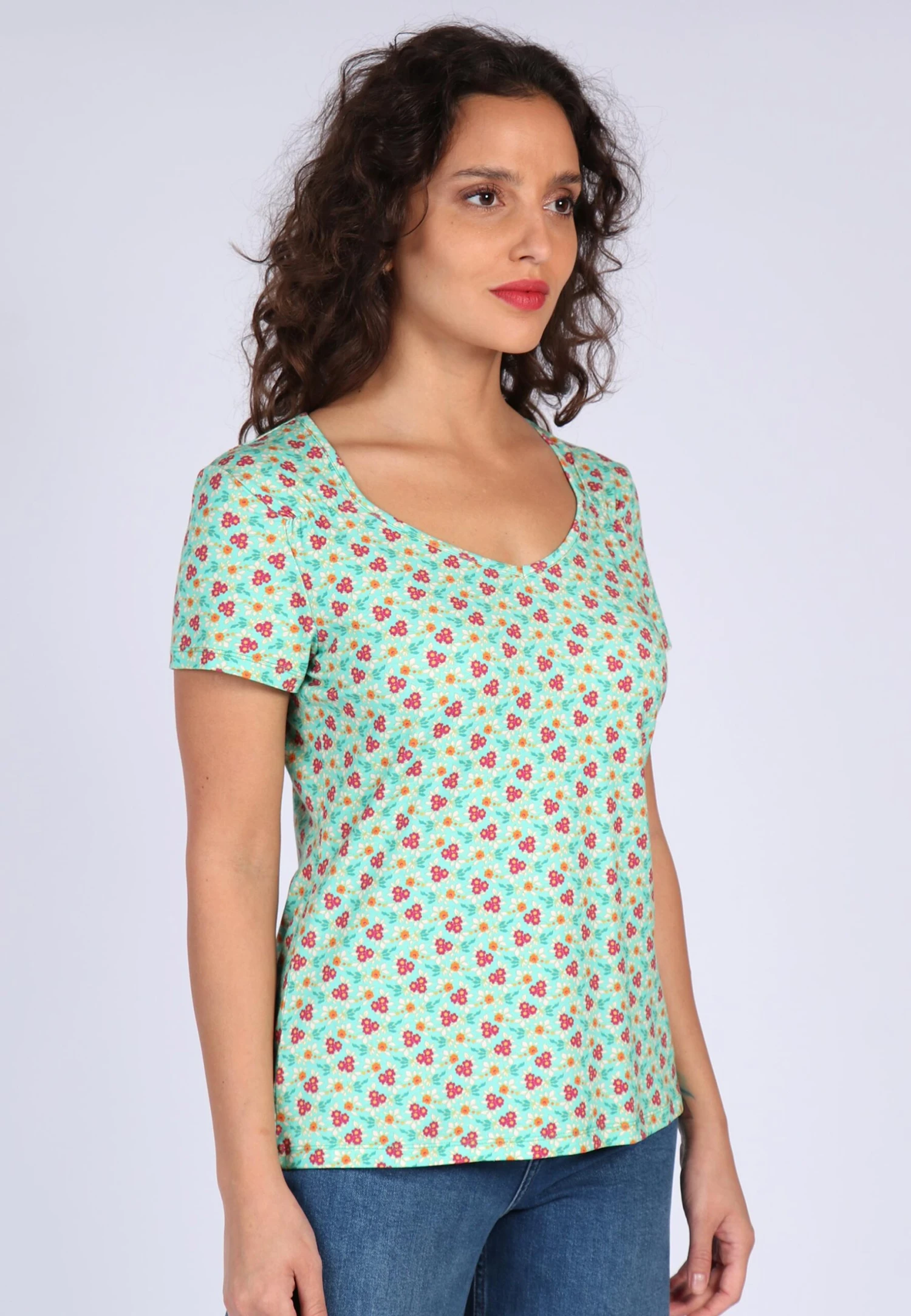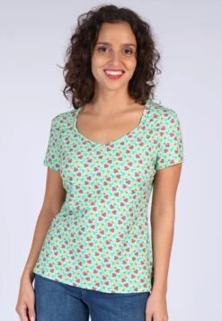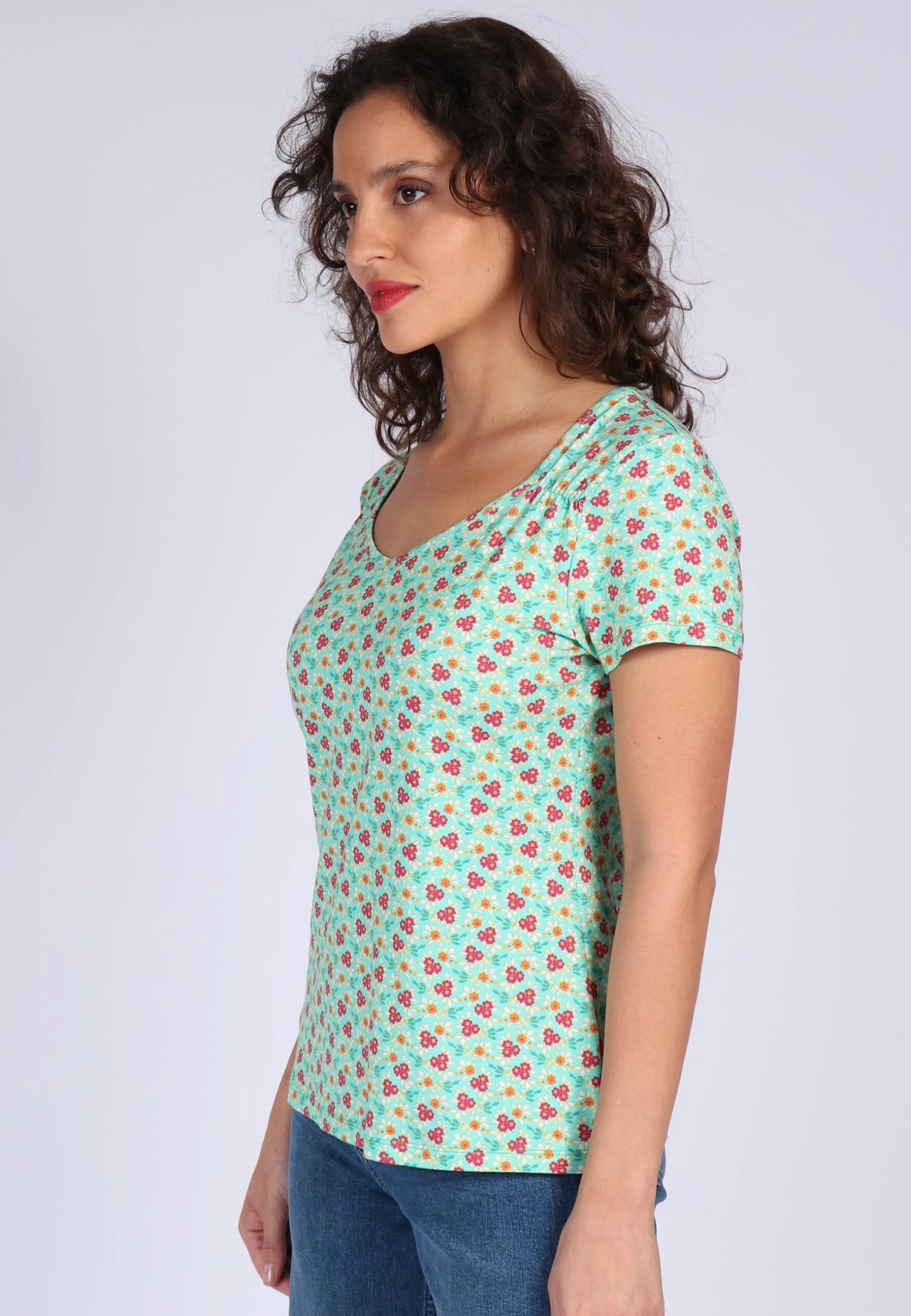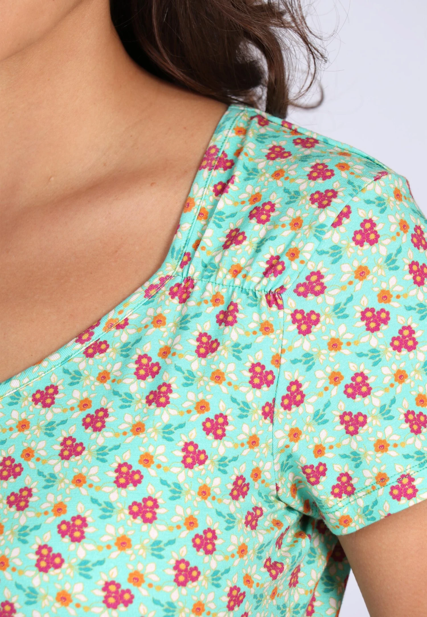 Gesamtlänge bei Größe M 60cm. Einfach zauberhaft mit einem femininen Herzausschnitt ist unser T-Shirt Jamila mit Kurzarm. Aus weicher und nachhaltiger Jerseyqualität gefertigt ist es in einem entzückenden Lykka du Nord Druck erhältlich.