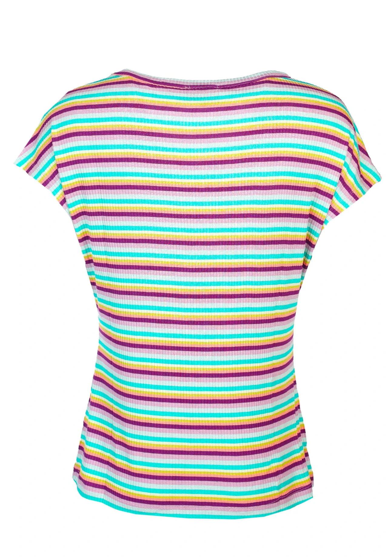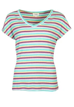 Länge 65cm (M). Easy to wear und dabei super bequem ist das T-Shirt Janny mit einem multicolor Streifen-Muster. Die hochewertige und nachhaltige Visose-Qualiät liegt weich auf der Haut. Der ideale Begleiter für jeden Tag.