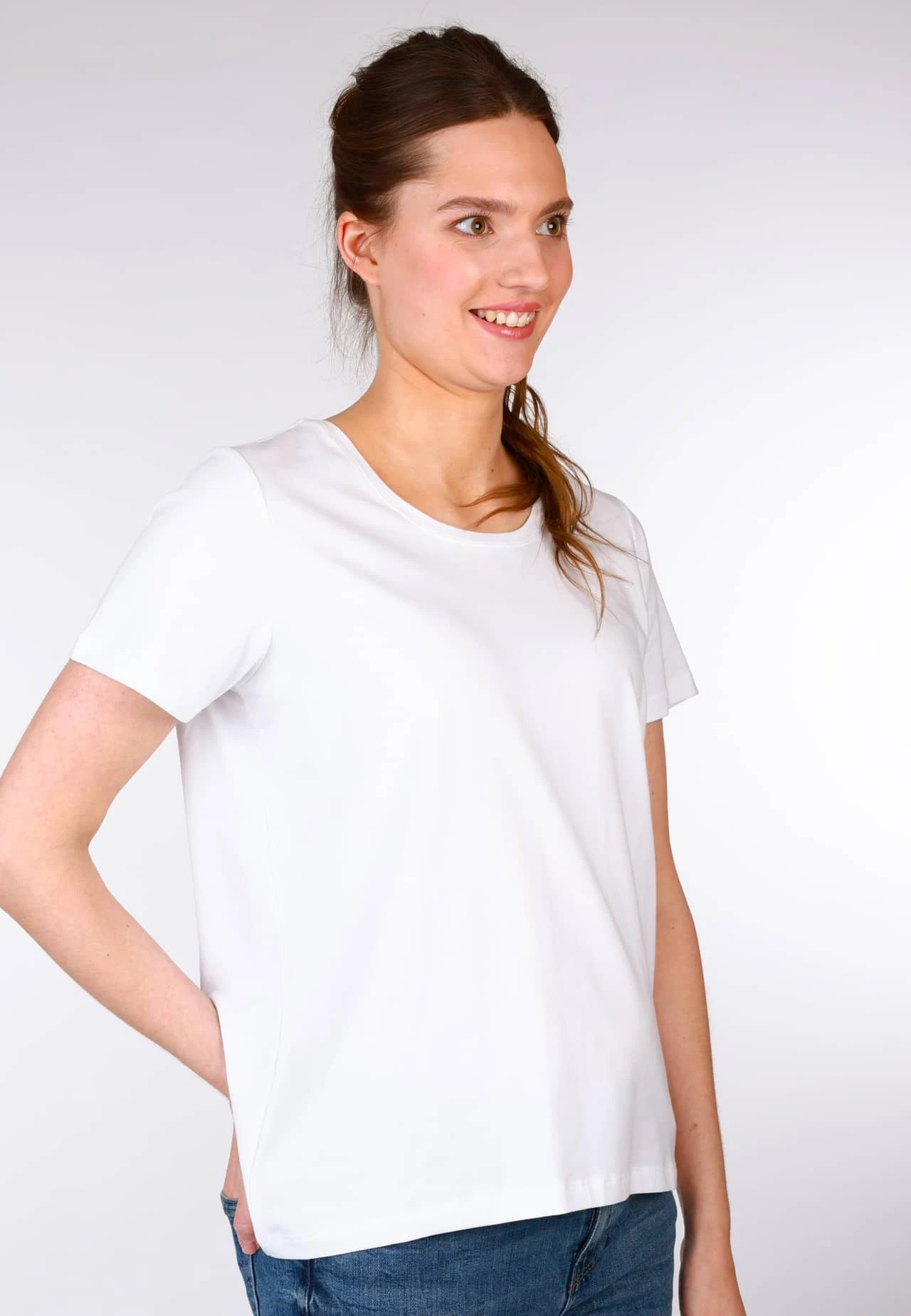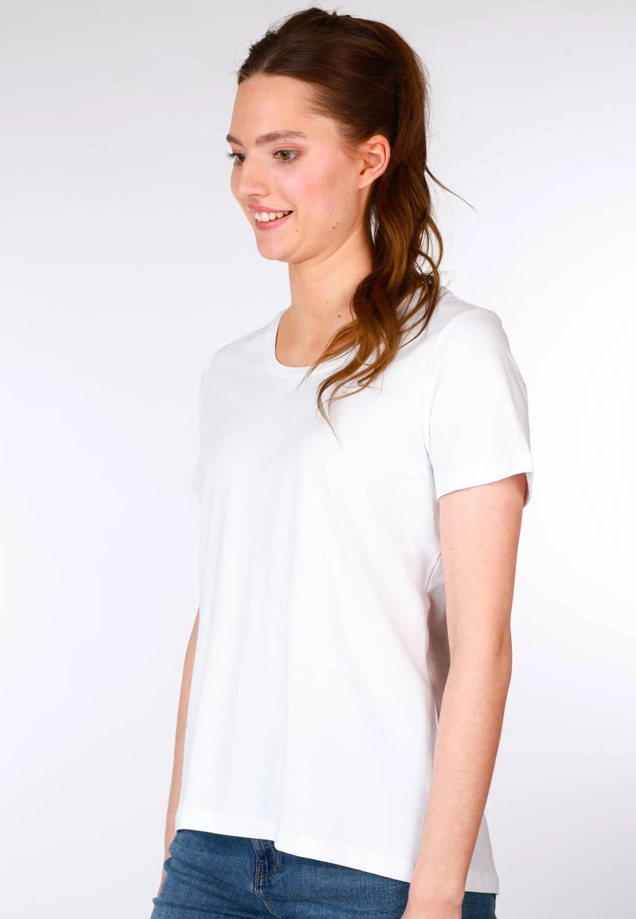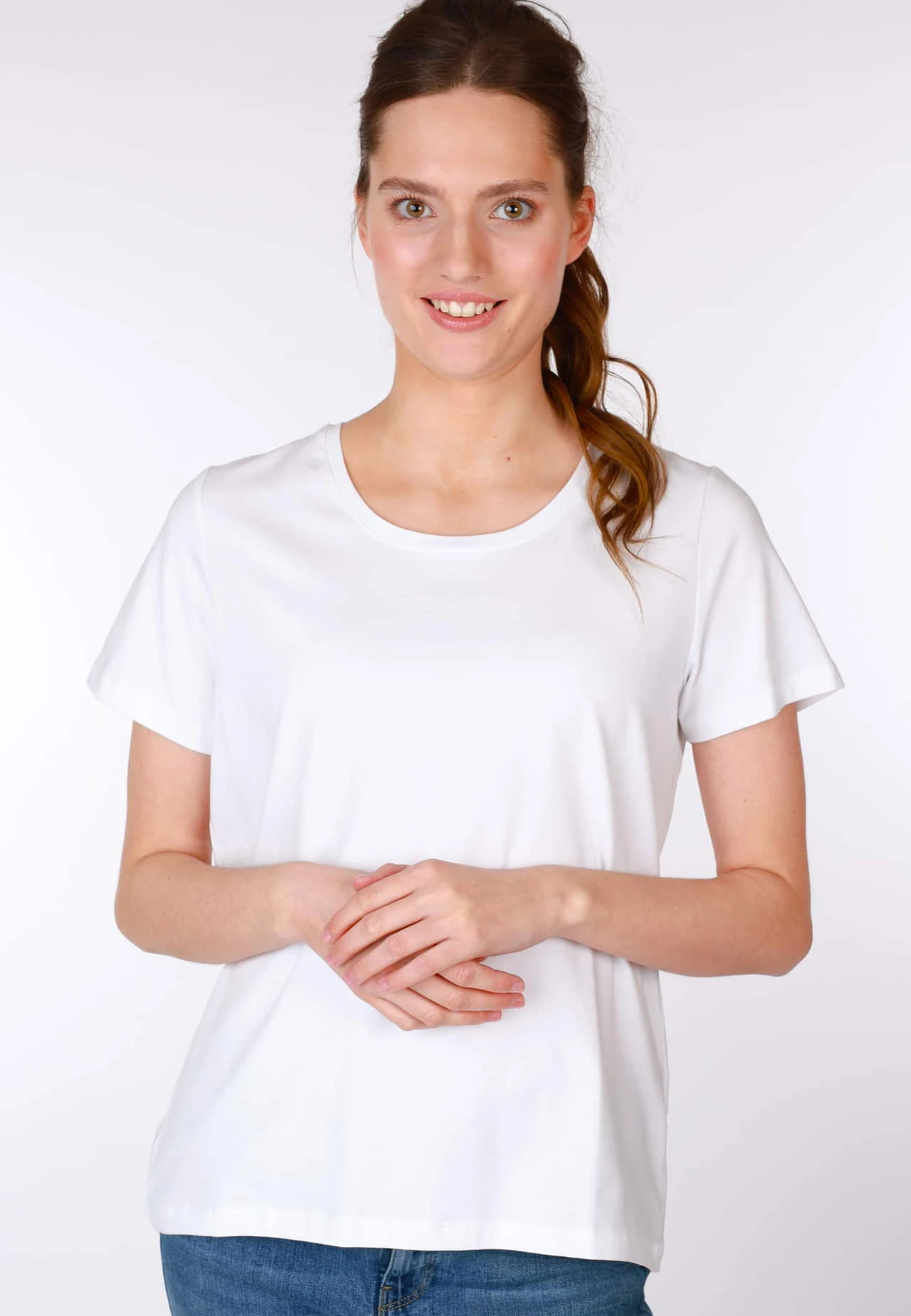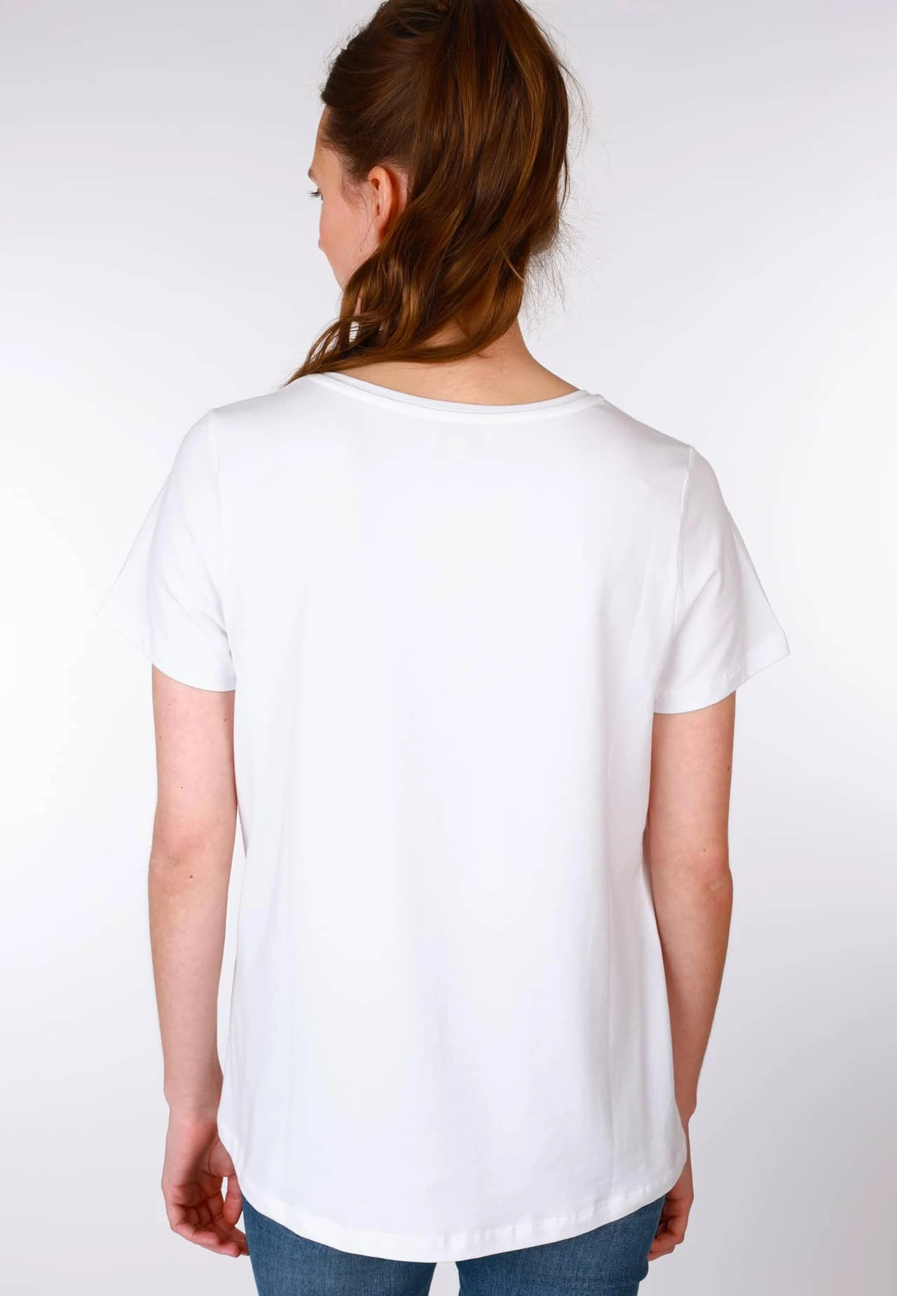 Gesamtlänge 63cm (M). Klassisches T-Shirt mit formschönen Ausschnitt und angenehmer Passform. Die ideale Ergänzung für jeden Kleiderschrank.
