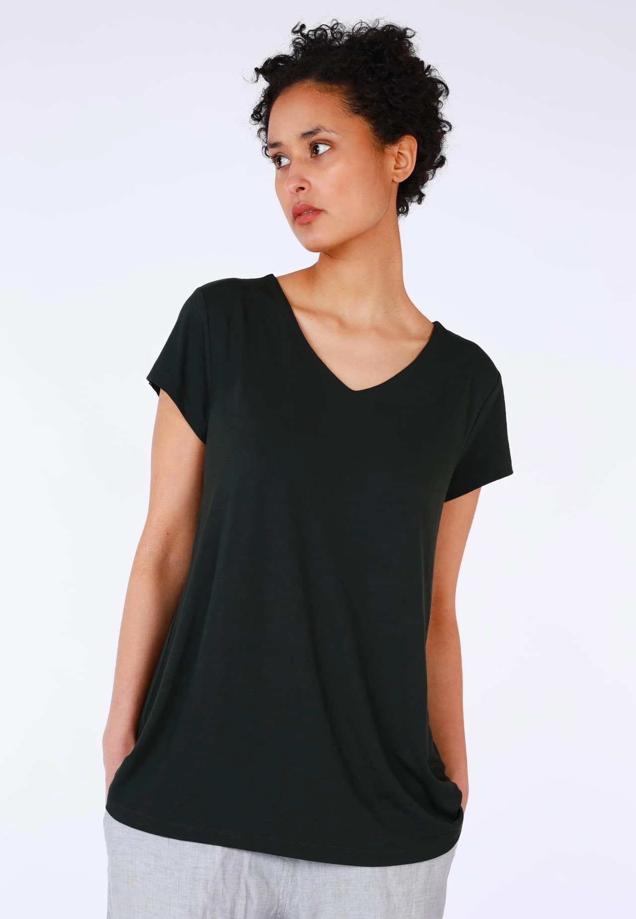 Gesamtlänge 72cm (M). Naya ist ein schönes und zeitloses basic Oberteil, welches in keinem Schrank fehlen darf. Der leicht vom Körper weggehende Schnitt macht es sehr komfortable und den femininen Look unterstreichen der V-Ausschnitt und die etwas kürzeren Ärmel.