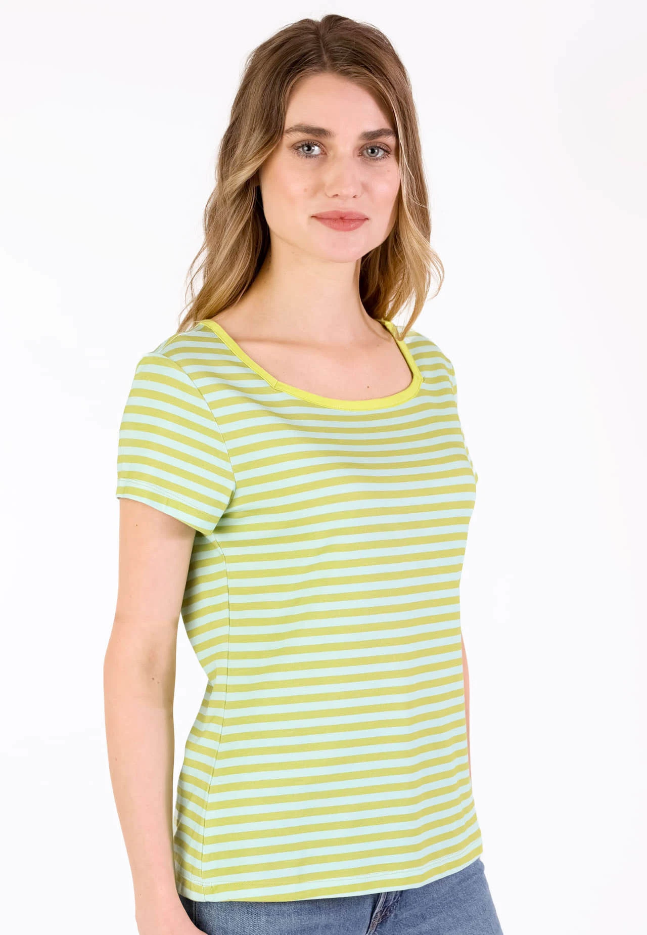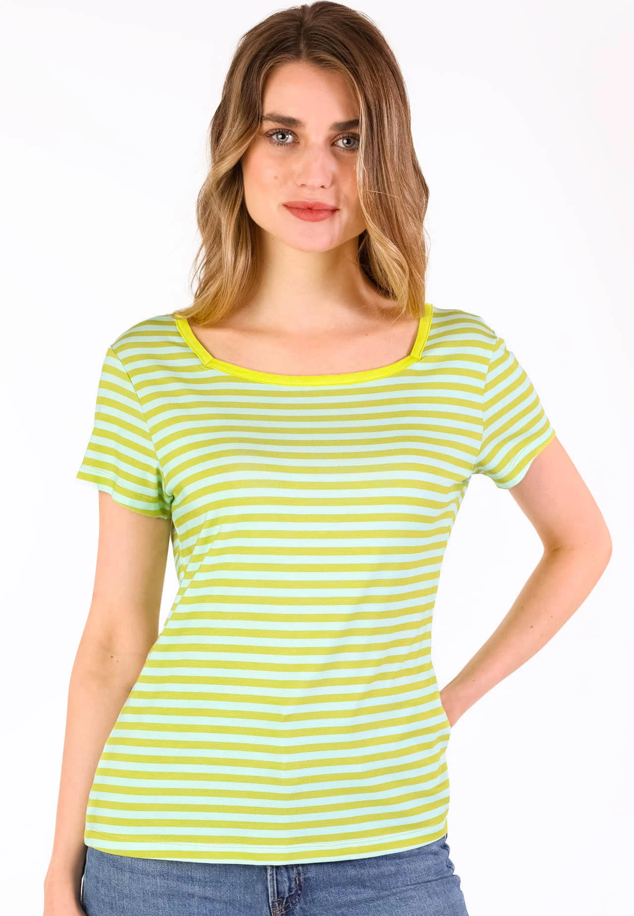 Länge 60cm (M). Das T-Shirt Tal stripe mit Karree Ausschnitt ist ein modernes und stylisches Kleidungsstück, das in keiner Garderobe fehlen sollte. Der Karree Ausschnitt verleiht dem Shirt eine besondere Note und setzt das Dekolleté gekonnt in Szene. Das T-Shirt besteht aus hochwertigem Material und ist angenehm zu tragen. Es ist in verschiedenen Farben erhältlich und kann vielseitig kombiniert werden.